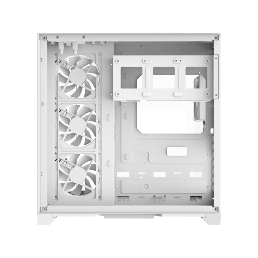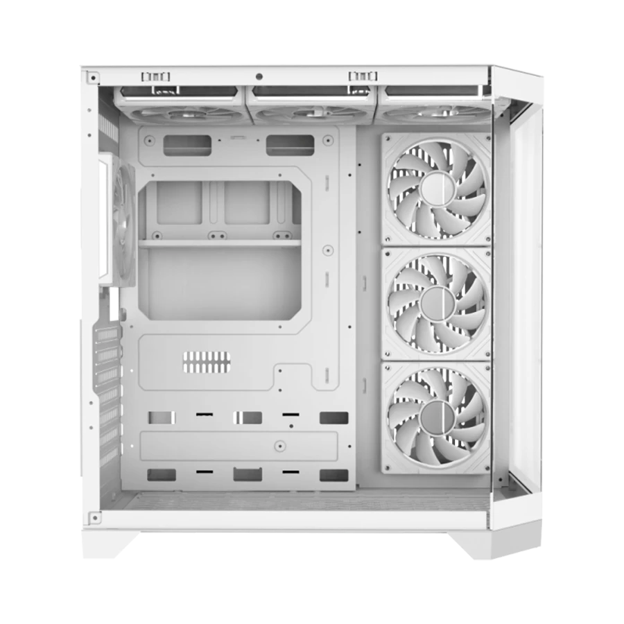 این کیس با سه فن ARGB در سمت راست و یک فن در پشت، تهویه‌ای قدرتمند و مؤثر ارائه می‌دهد. پشتیبانی از رادیاتور ۳۶۰ میلی‌متری در بالا، امکان نصب سیستم‌های خنک‌کننده آبی حرفه‌ای را فراهم کرده است. مسیر جریان هوای طراحی‌شده گرما را سریعاً دفع می‌کند و باعث حفظ دمای مطلوب برای قطعات داخلی می‌شود.