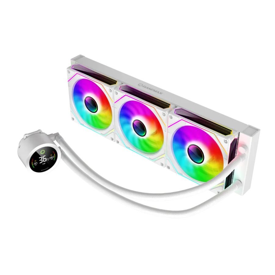 خنککننده مایع GAMEMAX IceBurg 360 Digital White یک انتخاب ایدهآل برای علاقهمندان به سیستمهای حرفهای و گیمینگ است که به عملکرد خنکسازی قدرتمند نیاز دارند. این خنککننده مجهز به یک رادیاتور آلومینیومی با ابعاد 52×120×385 میلیمتر است که همراه با سه فن 120 میلیمتری، جریان هوای عالی و خنککنندگی بینظیر را برای پردازنده شما فراهم میکند. فنها با قابلیت اتصال 4 پین و 3 پین و سرعت چرخش متغیر بین 800 تا 1800 دور بر دقیقه، بهترین تعادل بین عملکرد و سطح نویز (36.9 دسیبل) را ارائه میدهند.