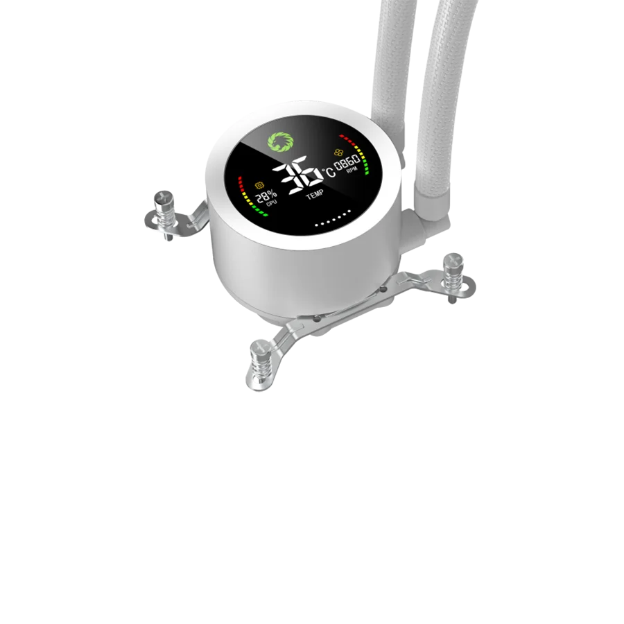 این خنککننده با طراحی پیشرفته خود، دارای یک صفحه نمایش دیجیتال ARGB روی پمپ است که علاوه بر زیبایی، اطلاعات مهمی مانند دما را نمایش میدهد. پمپ قدرتمند با سرعت 2400 دور بر دقیقه و لولههای خنککننده باکیفیت، جریان مایع را بهینه کرده و انتقال حرارت را به حداکثر میرساند. جنس بلوک اتصال از مس و رادیاتور از آلومینیوم، تضمینکننده انتقال حرارت مؤثر و طول عمر بالای محصول است که تا 40,000 ساعت عمر مفید دارد.
