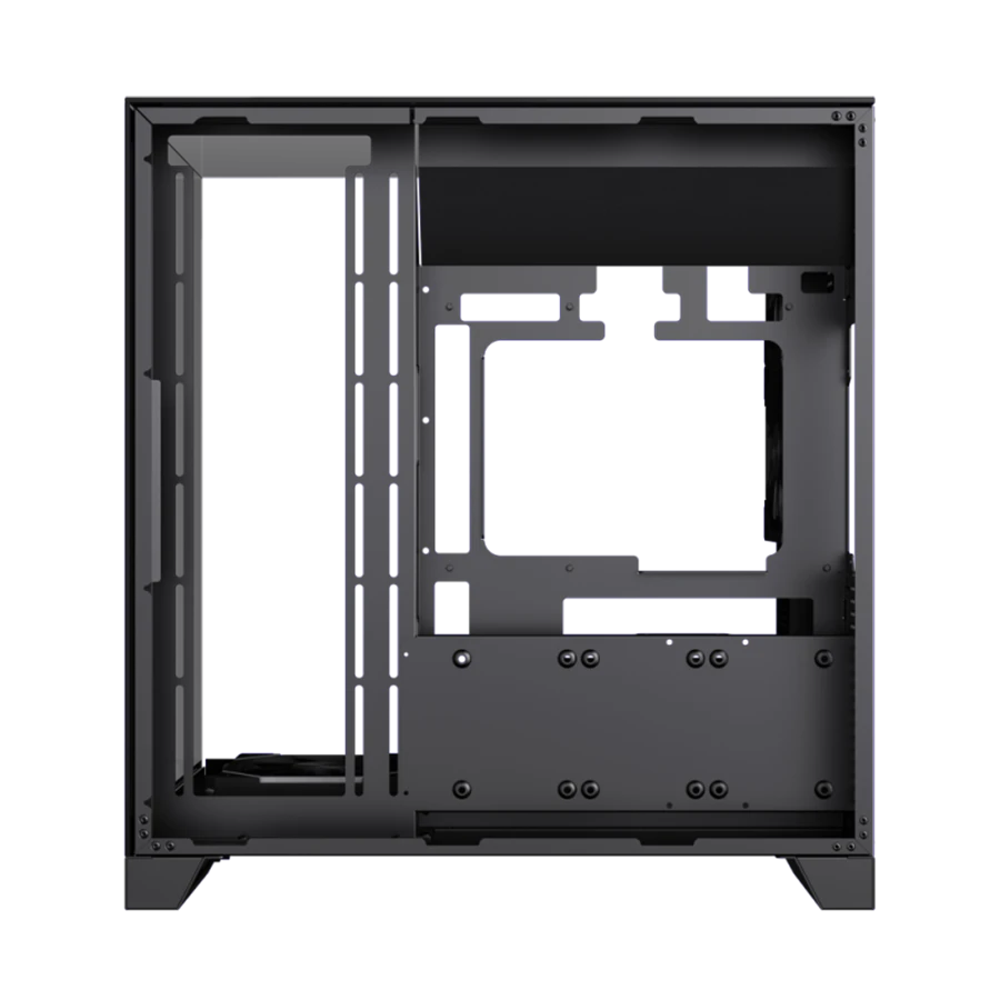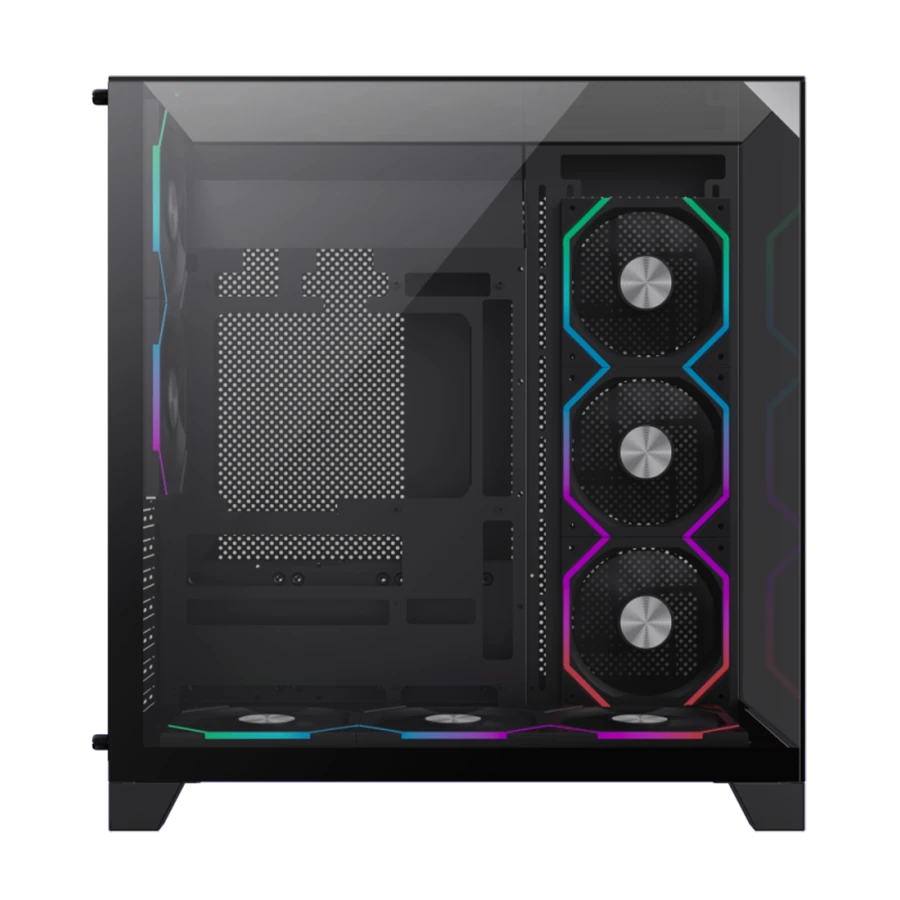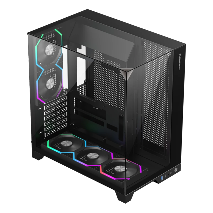 کیس گیمینگ گیم مکس GAMEMAX Infinity Pro BK با طراحی تمامنما و سه پنل شیشهای حرارتدیده، ظاهر خیرهکنندهای دارد. این طراحی به کاربران امکان میدهد تا نورپردازی RGB و قطعات داخلی را به خوبی مشاهده کرده و فضای گیمینگ جذابتری ایجاد کنند. بدنه مقاوم از جنس SPCC با ضخامت بالا، هم زیبایی و هم دوام را تضمین میکند.