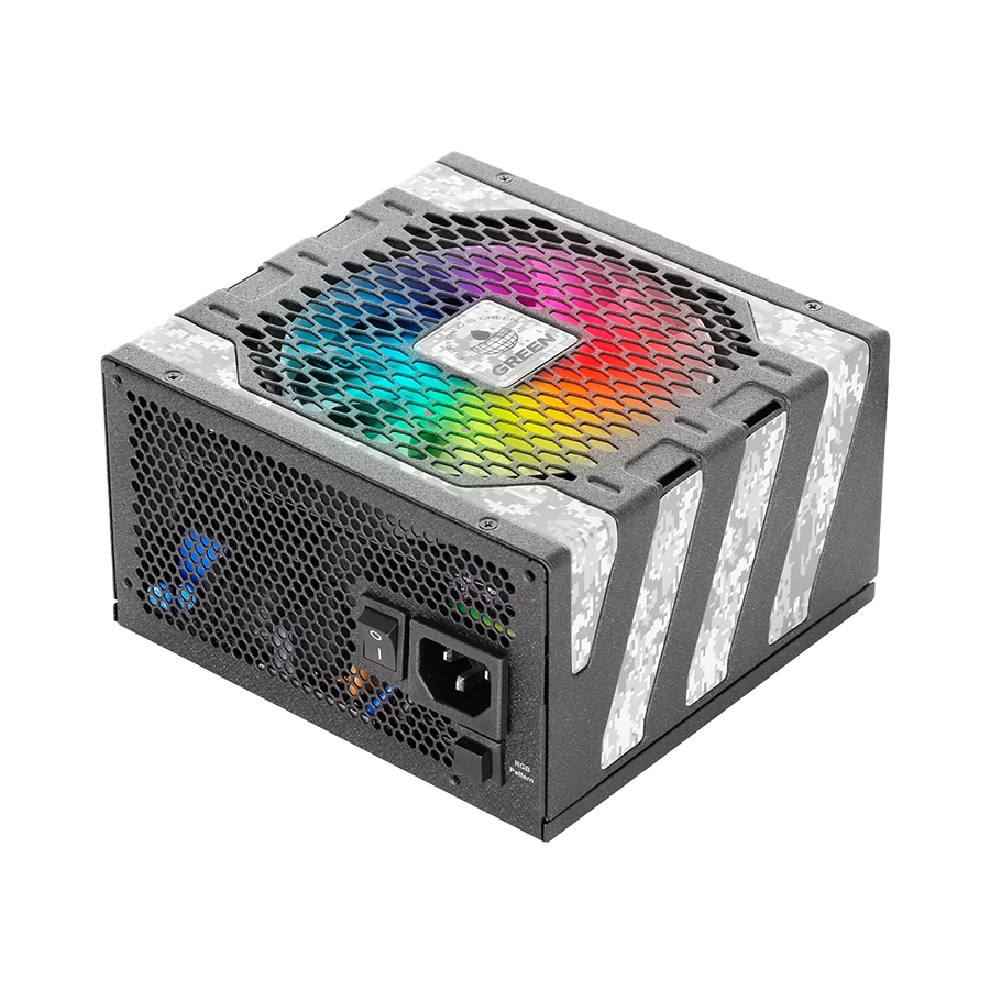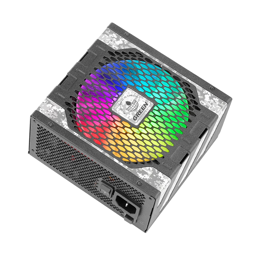 منبع تغذیه Green GP700B-HP EVO با طراحی ظاهری خاص و زیبا به سبک نظامی، نظر هر کاربری را به خود جلب میکند. این پاور مجهز به نورپردازی ARGB فوقالعاده چشمنواز است که با استفاده از کنترلر داخلی، چندین جلوه نورپردازی را ارائه میدهد. همچنین، قابلیت همگامسازی نورپردازی (MB Sync) با مادربردهای مجهز به سوکت ARGB 3Pin نیز وجود دارد.