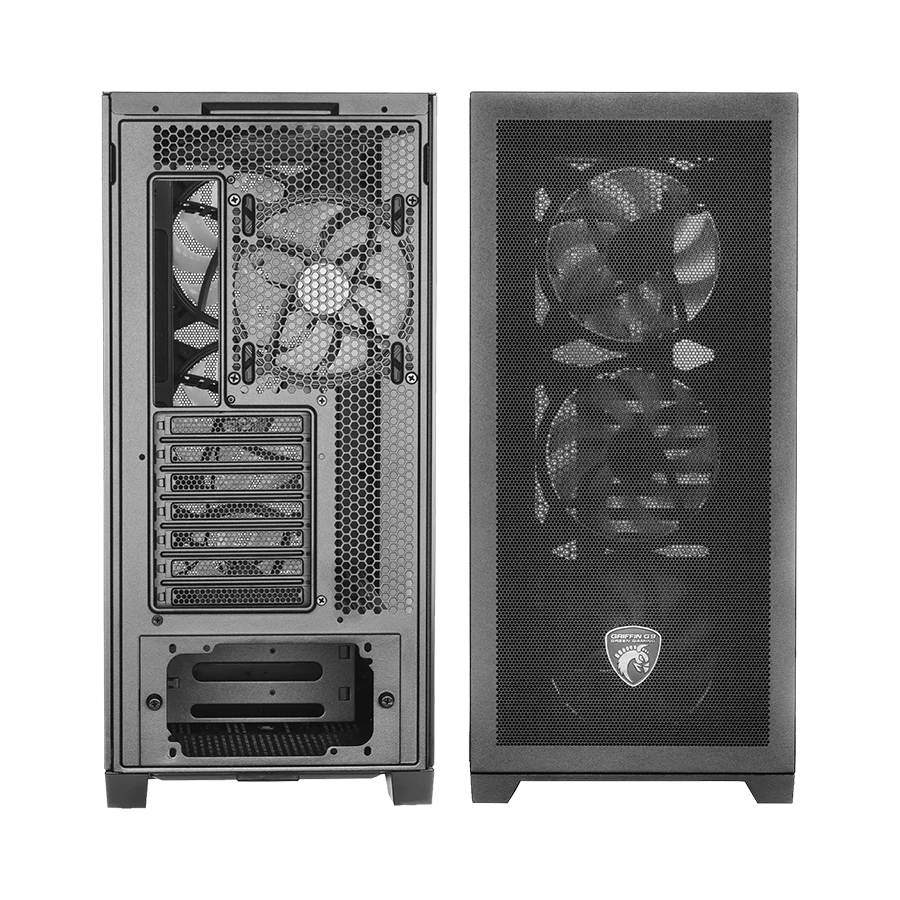 کیس GRIFFIN G9 با پشتیبانی از نصب تا ۱۰ فن 120/140 میلی‌متری، جریان هوای فوق‌العاده پایداری ارائه می‌دهد و در شرایط پردازش سنگین، دمای قطعات را کنترل‌شده نگه می‌دارد. وجود هفت فن ARGB پیش‌فرض، تجربه حرارتی و نورپردازی جذابی ایجاد می‌کند و هماهنگی کامل با مادربرد از طریق MB Sync محیطی حرفه‌ای به سیستم می‌بخشد. اسکلت گسترده کیس امکان نصب انواع واترکولینگ‌های حرفه‌ای را فراهم می‌کند و عملکرد خنک‌سازی را در سطح یک کیس پرچم‌دار ارتقا می‌دهد.