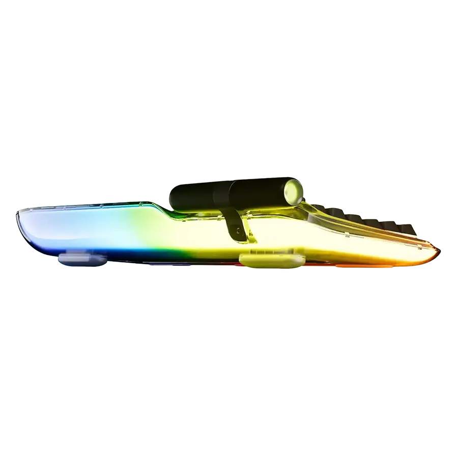 با حذف بخش نام‌پد، این کیبورد در قالب TKL (Tenkeyless) طراحی شده است که فضای بیشتری برای حرکت ماوس فراهم می‌کند و در عین حال، تمامی کلیدهای ضروری را حفظ کرده است. بدنه‌ی شفاف از جنس پلی‌کربنات با طراحی “Crystal Bubble” نه‌تنها زیبایی خاصی به میز کار شما می‌بخشد، بلکه مقاومت بالایی نیز دارد.
