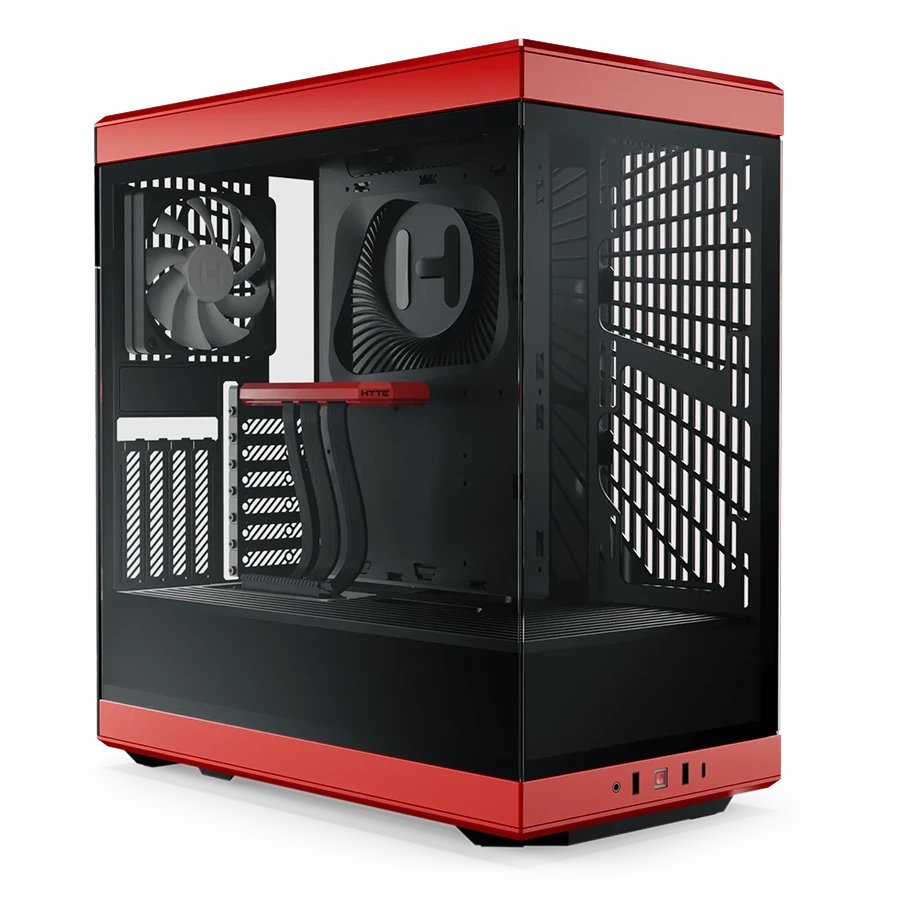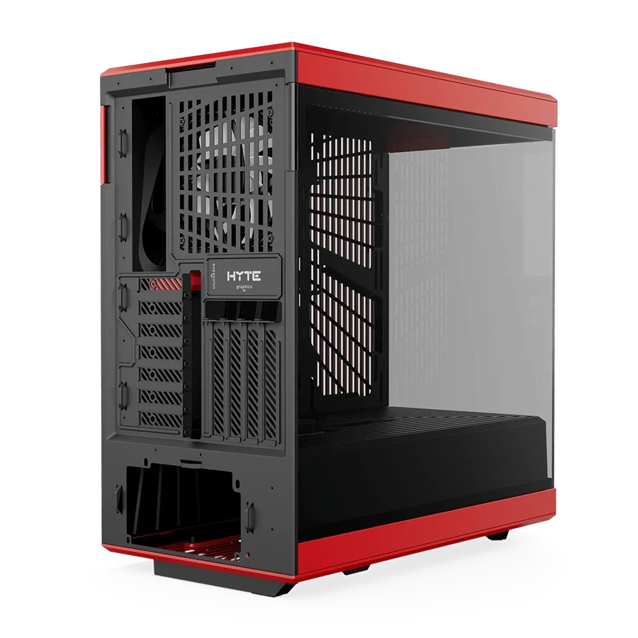 یکی از ویژگیهای برجسته این کیس، پشتیبانی از کارتهای گرافیکی به صورت عمودی است. HYTE Y40 امکان نصب کارتهای گرافیکی با ۴ اسلات کامل را فراهم کرده و فضای اضافی بین لبه کارت و شیشه برای بهبود جریان هوا فراهم میآورد. همچنین یک فن زیر شاسی منبع تغذیه به منظور تهویه بهتر کارت گرافیکی و بهبود عملکرد خنکسازی تعبیه شده است.