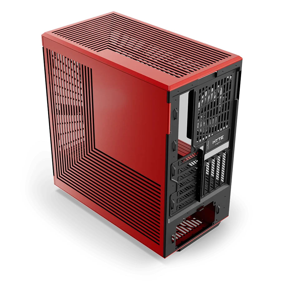 کیس هایت HYTE Y40 Black Cherry با طراحی چندبعدی، مرزهای استاندارد کیسهای ATX را به چالش کشیده است. جزئیات دقیق در تمام بخشهای کیس به گونهای تنظیم شدهاند که هر لبه و زاویه از زیباییشناسی منحصر به فرد بهرهمند باشد. پنل شیشهای دو تکه در این کیس، دید کاملی از عملکرد قطعات داخلی به کاربران ارائه میدهد و ظاهری مدرن و تمیز به سیستم میبخشد.