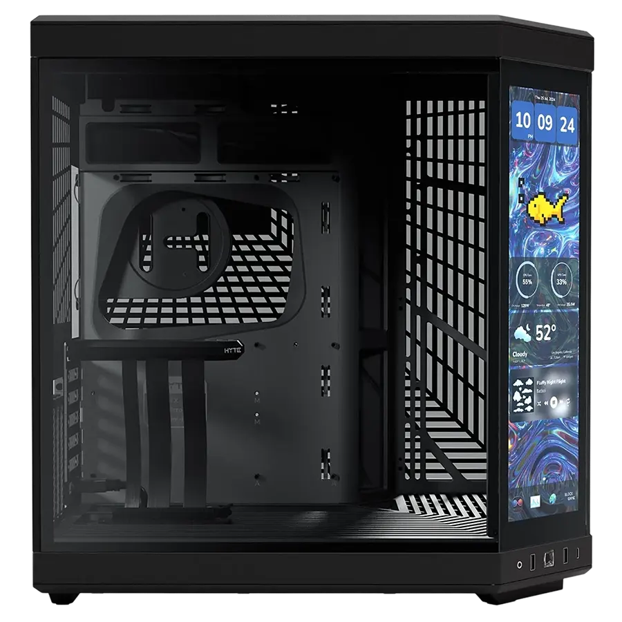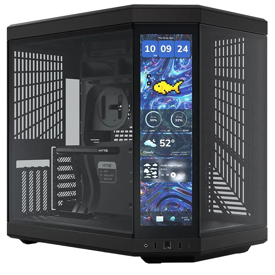کیس گیمینگ هایت HYTE Y70 TOUCH Pitch Black یک کیس مید تاور ATX مدرن و حرفهای است. که با طراحی دو محفظهای و فضای کافی برای نصب قطعات قدرتمند، تجربهای بینظیر از گیمینگ نسل جدید را ارائه میدهد. این کیس با استفاده از شیشههای پانورامیک سهتکه، نمایی کامل از قطعات داخلی کامپیوتر را به شما نمایش میدهد. این طراحی نه تنها زیبایی سیستم را افزایش میدهد، بلکه به شما اجازه میدهد بهترین سختافزارهای خود را به نمایش بگذارید.