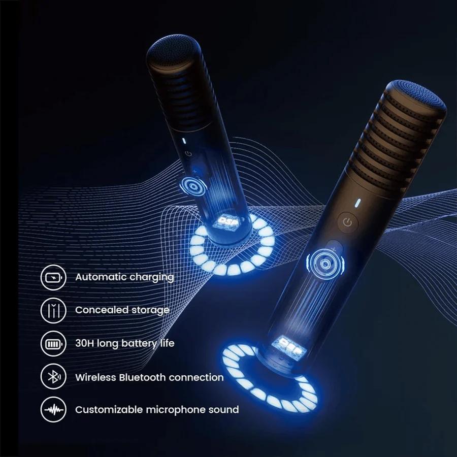 •  میکروفون بی‌سیم با ۳۰ ساعت عمر باتری و افکت‌های صوتی قابل تنظیم