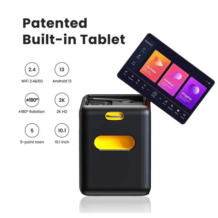 صفحه‌نمایش ۱۰.۱ اینچی LCD-IPS با رزولوشن 800P برای ناوبری راحت و نمایش واضح تنظیمات، متن آهنگ‌ها و اپلیکیشن‌های کارائوکه مانند Karafun و Spotify که دسترسی به موسیقی و آهنگ‌های مورد علاقه شما را آسان می‌کند.