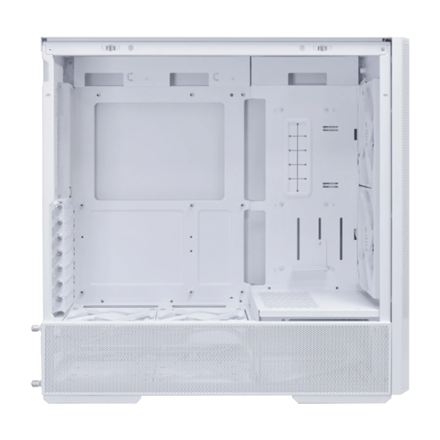 کیس گیمینگ لیان لی LANCOOL 207 White با طراحی مشبندی کامل در قسمت جلو، بالا و پایین عرضه میشود. این ساختار هوای تازه را بهطور مستقیم به قطعات اصلی منتقل میکند و باعث کاهش دمای کلی سیستم میشود. چهار فن قدرتمند از پیش نصبشده در این کیس عملکرد خنککنندگی را به سطحی حرفهای ارتقا دادهاند. دو فن ۱۴۰ میلیمتری ARGB در جلو و دو فن ۱۲۰ میلیمتری PWM در زیر محفظه پاور نصب شدهاند. این چینش باعث میشود GPU و سایر قطعات حیاتی همواره در دمای مناسب باقی بمانند.