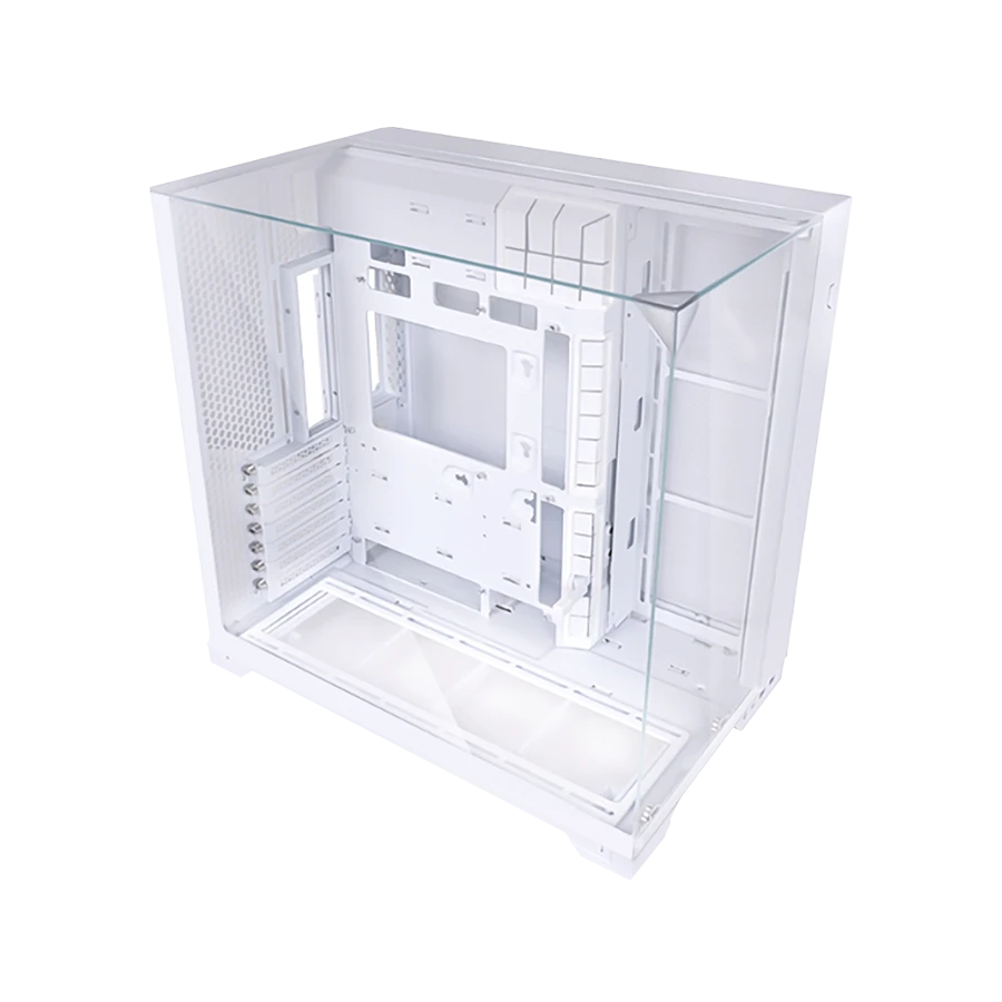 کیس گیمینگ لیان لی O11 VISION COMPACT White با طراحی ماژولار، امکان سفارشیسازی بینظیری را در اختیار کاربران قرار میدهد. طراحی بدون ستون این کیس با پنلهای شیشهای مقاوم، نمایی سهبعدی از اجزای داخلی سیستم را ارائه میکند. گزینههای قابل تعویض برای پنل بالایی شامل شیشه حرارتدیده و مش، کاربر را میان زیبایی و کارایی انتخاب میدهد. ساختار پشتیبانی قوی در محل اتصال پنلها، تا ۳۵ کیلوگرم فشار را تحمل کرده و دوام بالای ساختار را تضمین میکند.