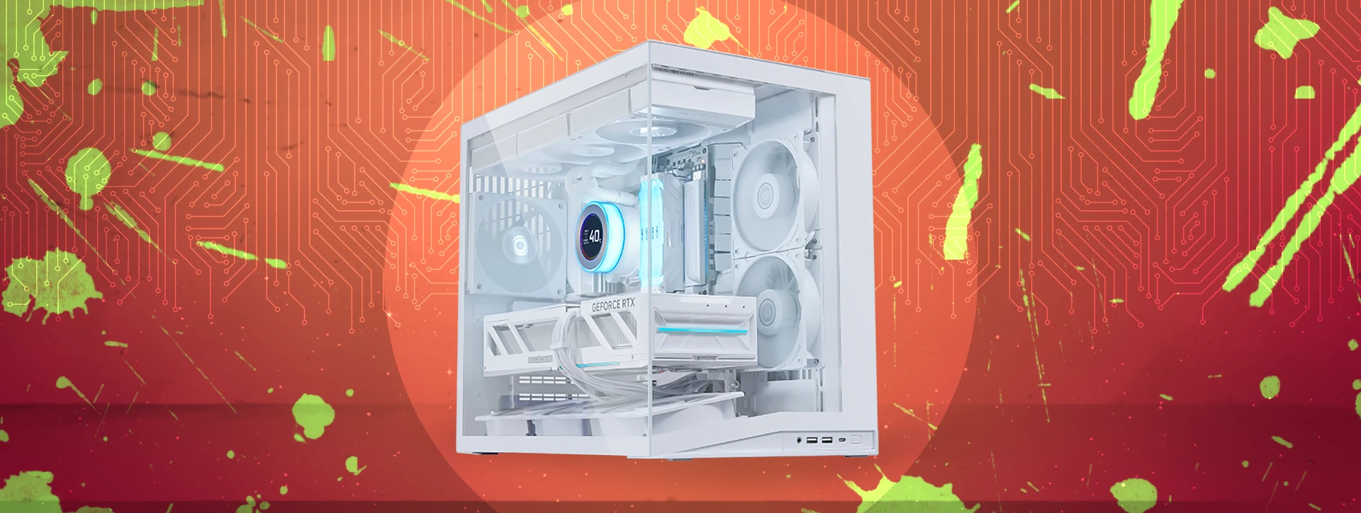 این کیس امکان نصب کارت گرافیک به صورت افقی یا عمودی را به همراه براکت ضد افتادگی GPU فراهم می‌کند. پایه‌های آلومینیومی محکم، ثبات سیستم را تضمین کرده و ظاهر کلی کیس را ارتقا می‌دهند. براکت عمودی قابل تنظیم، از افتادگی کارت‌های گرافیک سنگین جلوگیری می‌کند و ظاهری تمیز و منظم ارائه می‌دهد.