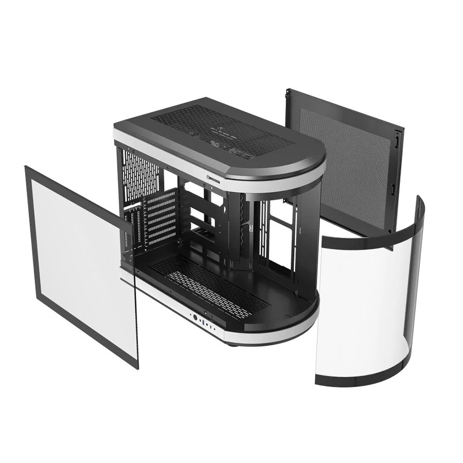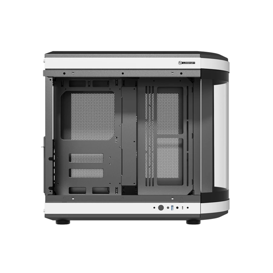 کیس گیمینگ لاجیکی Logikey C570BW با طراحی مدرن و رنگ مشکی سفید، جلوه‌ای حرفه‌ای و منظم برای میز کار گیمرها ایجاد می‌کند و ظاهر سیستم را بسیار جذاب نشان می‌دهد. پنل شیشه‌ای حرارت‌دیده کلیپسی در سمت چپ، امکان مشاهده قطعات داخلی و نورپردازی سیستم را به ساده‌ترین شکل ممکن فراهم می‌سازد. پنل فلزی سمت راست در کنار شاسی SPCC با ضخامت ۰٫۸ میلی‌متر، استحکام بالایی برای استفاده طولانی‌مدت و جابه‌جایی‌های مکرر ایجاد می‌کند.