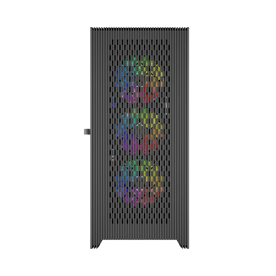 پنل جلویی کیس گیمینگ C644B دسترسی سریع و آسان به درگاه‌های کاربردی را فراهم می‌کند. وجود دو پورت USB 3.0 و یک پورت Type-C، اتصال سریع تجهیزات جانبی مدرن را تضمین می‌نماید. درگاه‌های صوتی HD Audio و Mic کیفیت مناسبی برای هدست‌های گیمینگ ارائه می‌دهند. اکولایزر LED داخلی، جلوه نوری جذابی ایجاد کرده و هماهنگی زیبایی با سایر قطعات RGB برقرار می‌سازد.