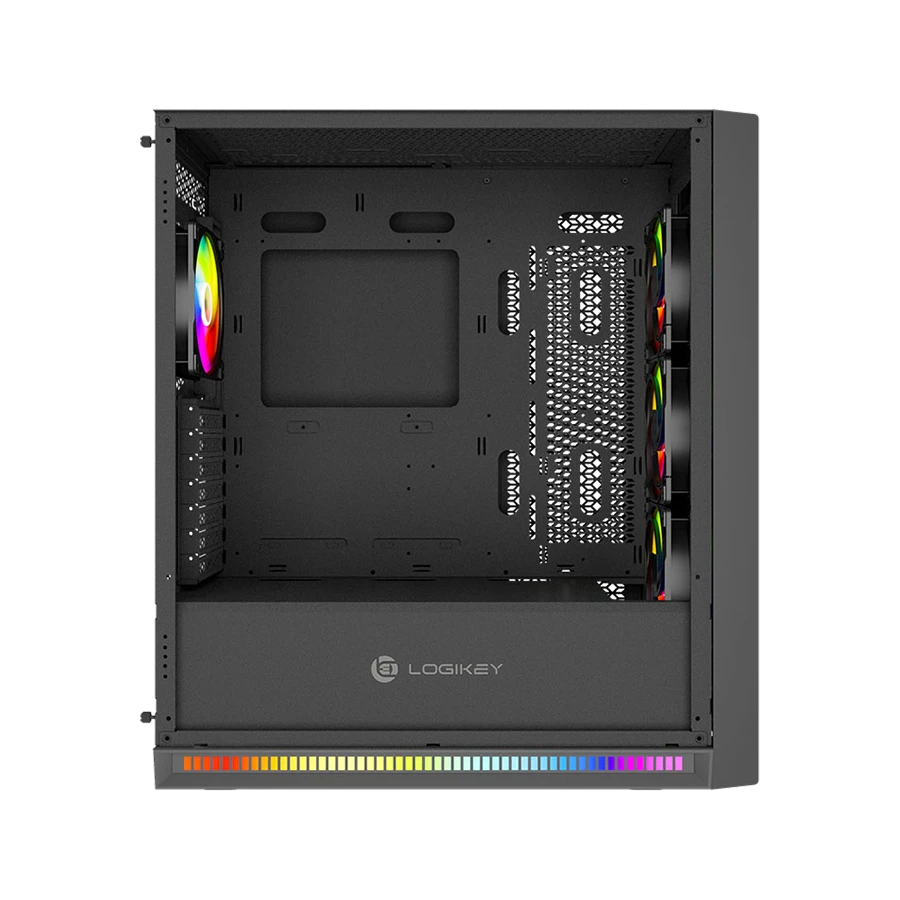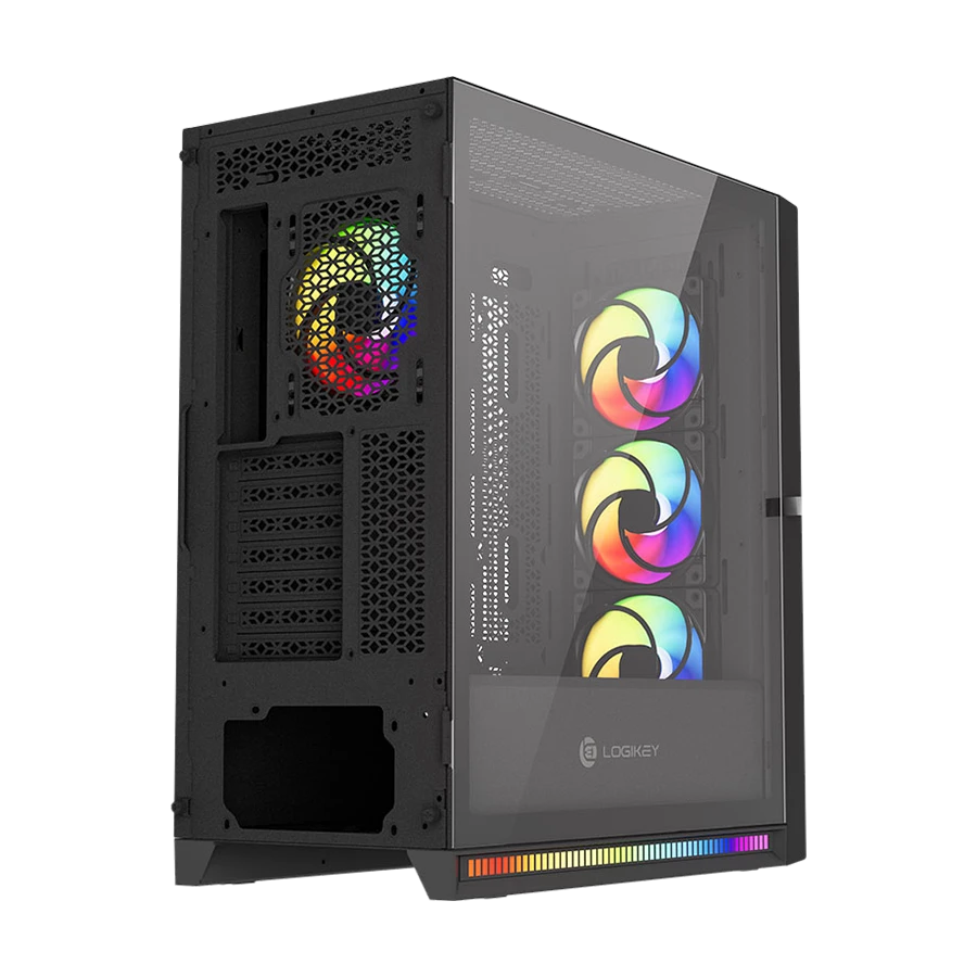 کیس گیمینگ لاجیکی Logikey C644B با طراحی مدرن و رنگ مشکی، ظاهری حرفه‌ای و جذاب برای سیستم‌های گیمینگ ایجاد می‌کند. استفاده از شیشه حرارت‌دیده لولایی در پنل چپ، امکان نمایش کامل قطعات داخلی و نورپردازی را فراهم می‌سازد. پنل سمت راست از فولاد مقاوم همراه با مش طراحی شده که علاوه بر استحکام، به بهبود جریان هوا کمک می‌کند. ساختار فولادی با ضخامت مناسب، دوام بالا و حس اطمینان را هنگام اسمبل یا جابه‌جایی سیستم به کاربر منتقل می‌کند.