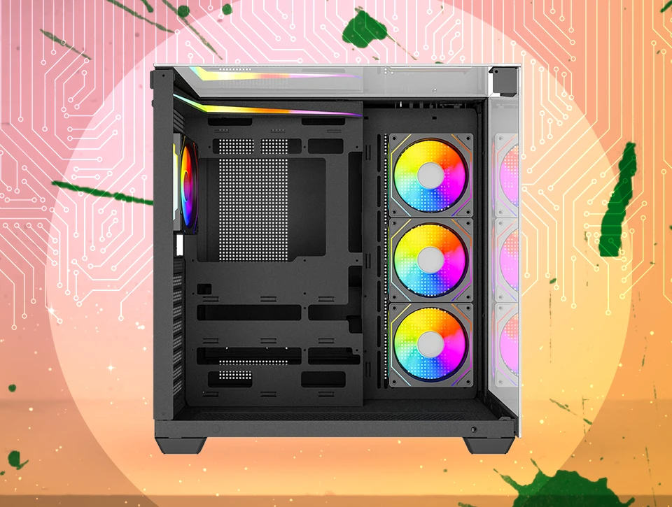 کیس گیمینگ لاجیکی C714B از نظر خنک‌کنندگی عملکردی قدرتمند برای سیستم‌های حرفه‌ای ارائه می‌دهد. چهار فن از پیش نصب‌شده، شامل یک فن عقب و سه فن معکوس، جریان هوای مؤثر و یکنواختی ایجاد می‌کنند. امکان نصب فن‌های اضافی در کف و براکت مادربرد، انعطاف‌پذیری بالایی در مدیریت دما فراهم می‌سازد. پشتیبانی از واترکولینگ تا سایز 360 میلی‌متر، این کیس را برای سیستم‌های پرقدرت ایده‌آل می‌کند.