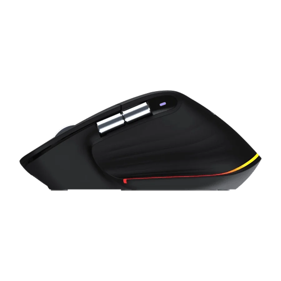 این محصول دارای اتصال سهحالته است که از بلوتوث 5.0، دانگل RF 2.4 گیگاهرتز و کابل USB بافتهشده پشتیبانی میکند و آزادی عمل فوقالعادهای را در استفاده ارائه میدهد. حساسیت قابل تنظیم از 1200 تا 4000 DPI همراه با پاسخدهی سریع تا 1 میلیثانیه، دقت بالا و عملکردی روان را برای گیمرها و کاربران حرفهای تضمین میکند. کلید DPI نیز با عملکرد اسکرول سهبعدی ترکیب شده که تجربه کاربری را ارتقا میدهد.