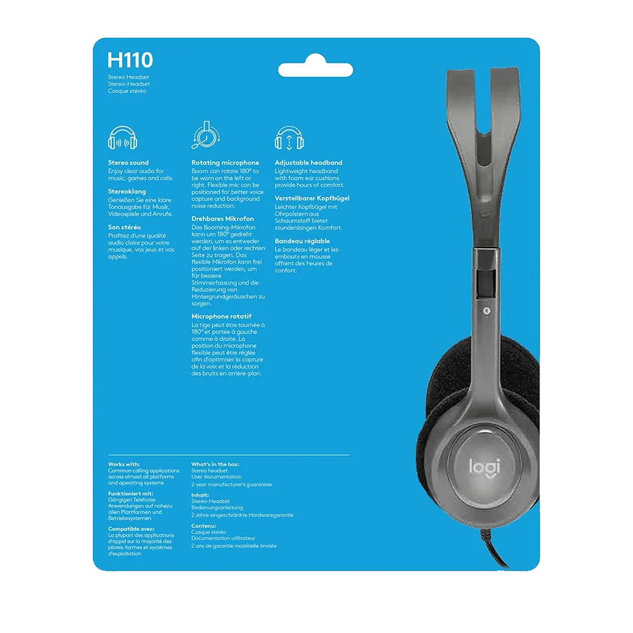 میکروفون‌های تعبیه شده در هدست h110 قابل چرخش 180 درجه به سمت چپ و راست را دارند. از میکروفون‌های این هدست می‌توانید برای ظبط صدا استفاده نمایید. یکی دیگر از قابلیت‌های این محصول حذف کامل نویز پس زمینه می‌باشد. زمانی که نمی‌خواهید از این میکروفون‌ها استفاده کنید، آن را داخل خود هدست قرار دهید تا مزاحمتی برایتان ایجاد نکند.