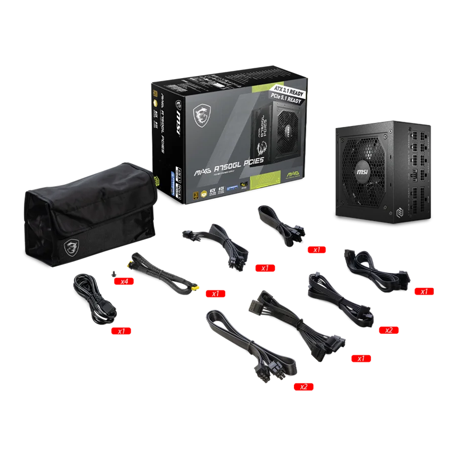 منبع تغذیه ام اس آی MSI MAG A750GL با ولتاژ ورودی 100 تا 240 ولت و فرکانس 47 تا 63 هرتز، انعطافپذیری لازم برای استفاده در مناطق مختلف جهان را دارد و انتخابی مطمئن برای سیستمهای گیمینگ و حرفهای به شمار میرود.