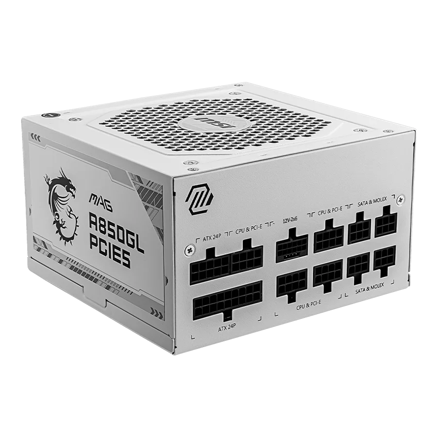 پاور ام اس آی MSI MAG A850GL PCIE5 WHITE Full Modular با توان خروجی 850 وات و طراحی تمام ماژولار، یک انتخاب ایده‌آل برای سیستم‌های گیمینگ و ورک‌استیشن‌های حرفه‌ای است. این منبع تغذیه با بهره‌گیری از گواهی 80 PLUS GOLD، بازدهی بالایی را تضمین می‌کند و با کاهش اتلاف انرژی، علاوه بر کاهش هزینه برق، عملکردی پایدار و بهینه ارائه می‌دهد. طراحی تمام سفید این پاور، آن را به گزینه‌ای جذاب برای کیس‌های مدرن با تم رنگی خاص تبدیل کرده است.
