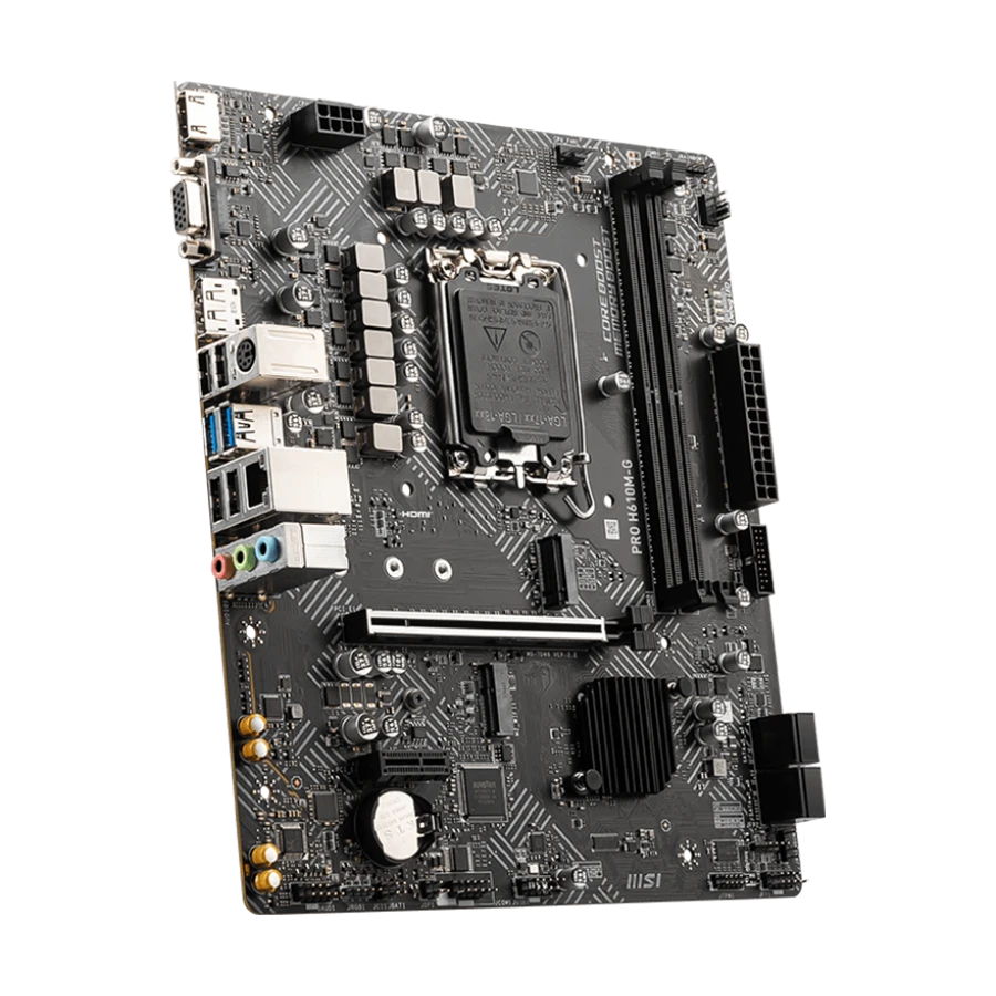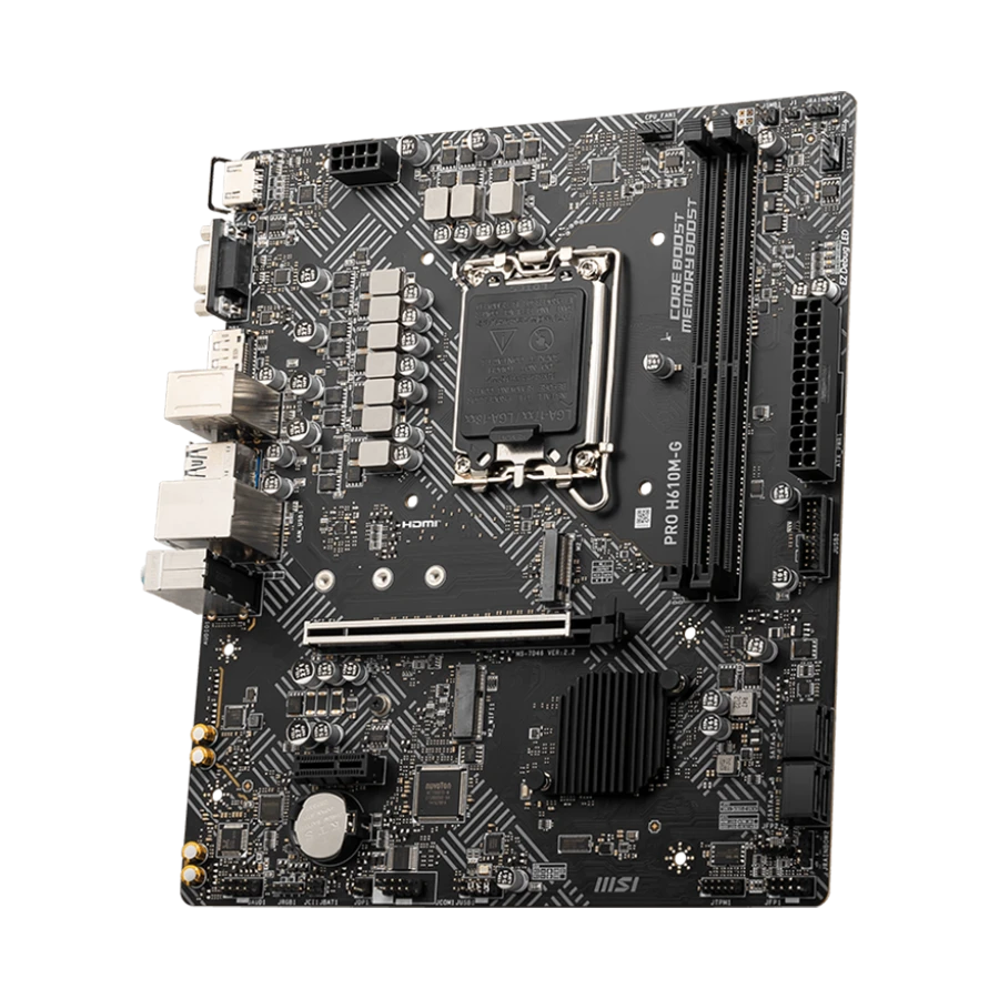 مادربرد MSI PRO H610M-G مجهز به فناوری Audio Boost بوده و صدایی با کیفیت استودیویی ارائه میدهد. همچنین با وجود پورتهای HDMI، DisplayPort و VGA قابلیت پشتیبانی از نمایشگرهای متنوع فراهم شده است. علاوه بر این، درگاههای متعدد USB و اسلاتهای توسعه امکان ارتقا و اتصال تجهیزات جانبی را سادهتر میکنند.