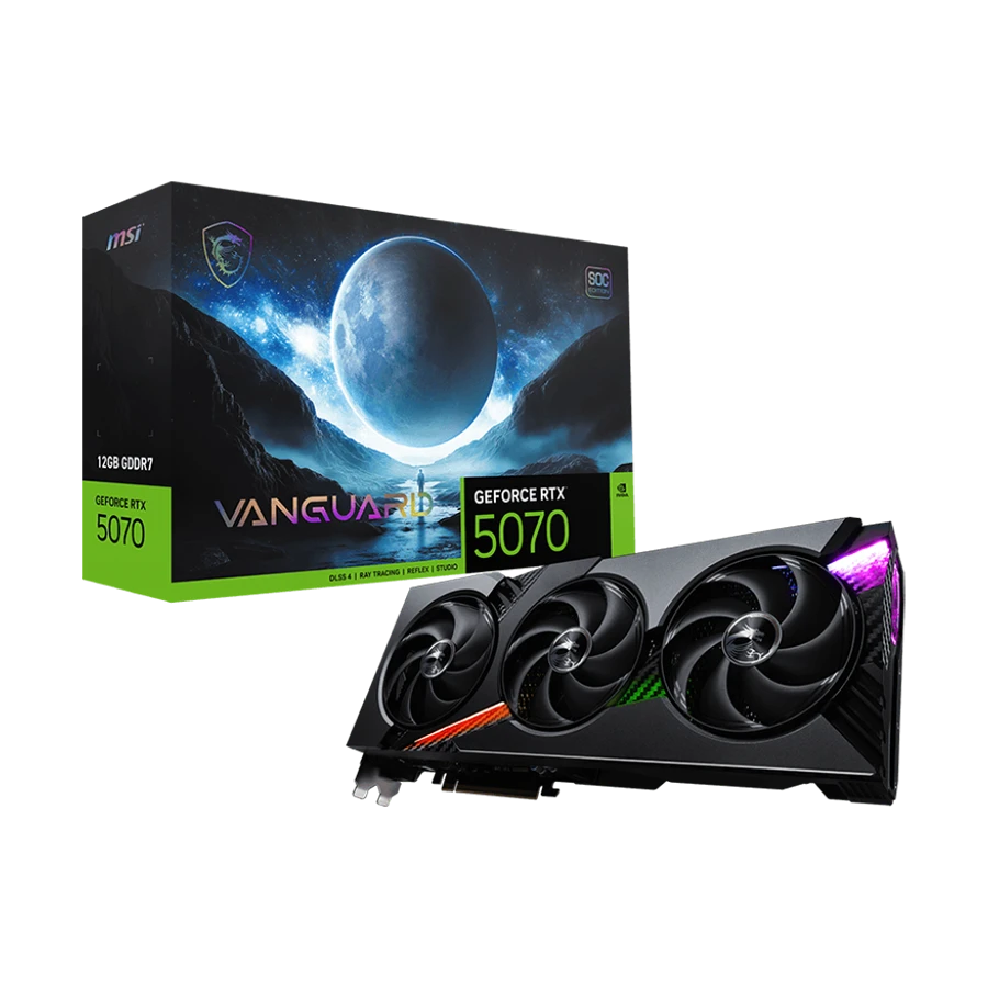 کارت گرافیک ام اس آی MSI RTX 5070 12G VANGUARD SOC با معماری جدید NVIDIA Blackwell ساخته شده که نسل تازهای از توان پردازشی را برای بازی و تولید محتوا فراهم میکند. این معماری با استفاده از هستههای تِنسر نسل پنجم و هستههای رهگیری پرتو نسل چهارم، سطحی خیرهکننده از قدرت را ارائه میدهد و عملکرد بسیار پایدار و دقیق را تضمین میکند. وجود چیپ RTX 50 باعث میشود این کارت در اجرای هوش مصنوعی و گرافیک پیشرفته، عملکردی بیرقیب داشته باشد و گیمرها تجربهای متفاوت از جزئیات و فریمریت دریافت کنند.