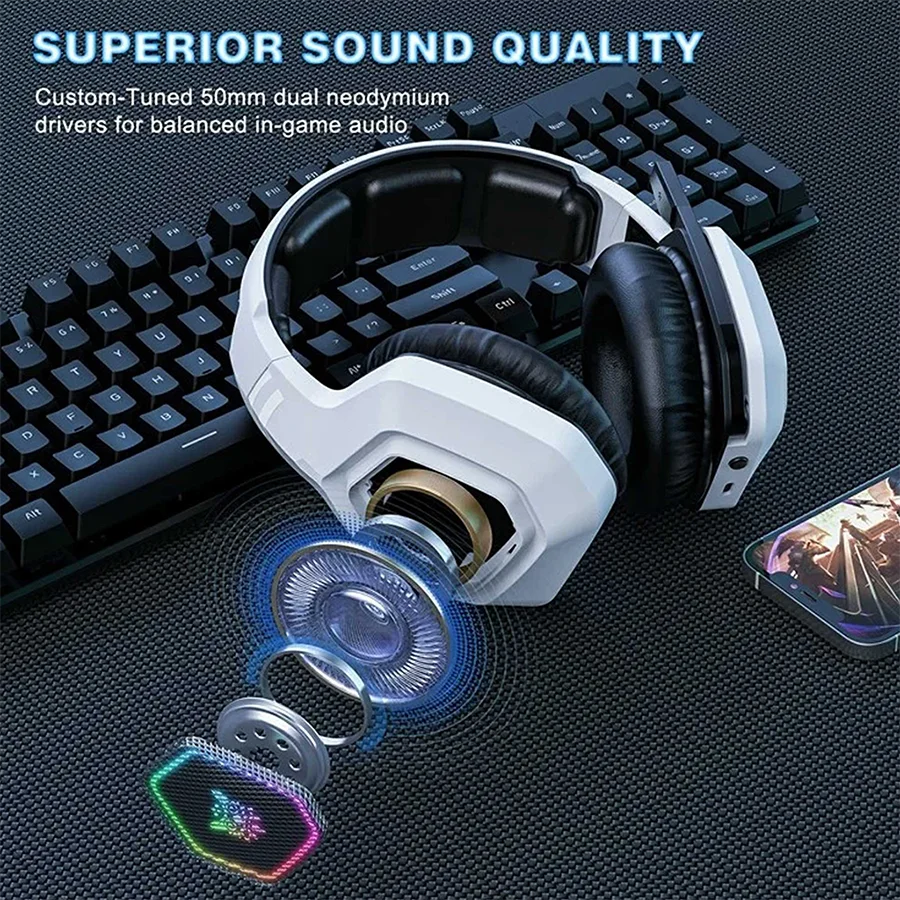هدست بیسیم گیمینگ اونیکوما ONIKUMA B100 White یک انتخاب ایدهآل برای گیمرهایی است که به دنبال ترکیبی از کیفیت صدا، راحتی و قابلیتهای بیسیم هستند. این هدست با طراحی On-ear و بیسیم، آزادی حرکت بیشتری را برای کاربران فراهم میکند. با استفاده از بلوتوث و یا دانگل 2.4GHz، میتوانید به راحتی به دستگاههای مختلف متصل شوید و از تجربه بازی بیسیم لذت ببرید.