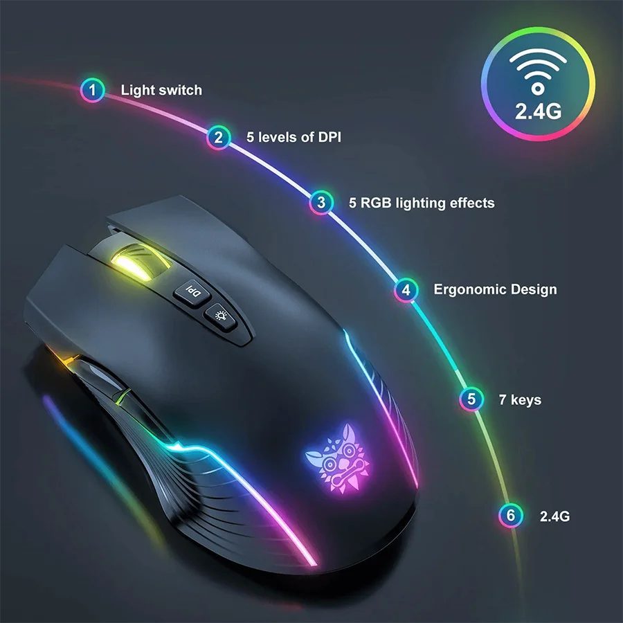 موس بیسیم گیمینگ اونیکوما ONIKUMA CW905 دارای ۵ سطح تنظیم DPI است که امکان تغییر حساسیت موس را در لحظه فراهم میکند؛ از حرکات سریع برای بازیهای اکشن گرفته تا حرکات دقیق برای بازیهای استراتژیک. علاوه بر این، موس دارای ۵ افکت نورپردازی RGB است که به فضای گیمینگ شما جلوهای خاص میبخشد و به راحتی قابل تنظیم است. همچنین، موس به دو حالت Game Mode و Sleep Mode مجهز شده است که مصرف انرژی را بهینه میکند و باعث افزایش طول عمر باتری میشود.