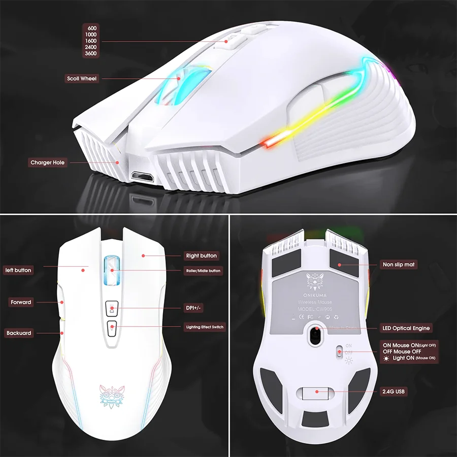 موس بیسیم گیمینگ اونیکوما ONIKUMA CW905 White دارای ۵ سطح تنظیم DPI است که امکان تغییر حساسیت موس را در لحظه فراهم میکند؛ از حرکات سریع برای بازیهای اکشن گرفته تا حرکات دقیق برای بازیهای استراتژیک. علاوه بر این، موس دارای ۵ افکت نورپردازی RGB است که به فضای گیمینگ شما جلوهای خاص میبخشد و به راحتی قابل تنظیم است. همچنین، موس به دو حالت Game Mode و Sleep Mode مجهز شده است که مصرف انرژی را بهینه میکند و باعث افزایش طول عمر باتری میشود.