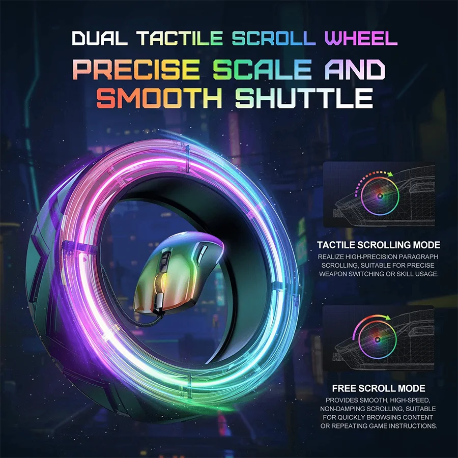 موس ONIKUMA CW922 دارای ۸ دکمه است که به کاربران امکان میدهد کلیدهای میانبر و دستورات مختلف را بهراحتی تنظیم کنند. اتصال این موس به صورت سیمی (USB) است و نیازی به باتری ندارد، بنابراین هیچگونه تأخیر یا نیاز به تعویض باتری وجود ندارد. این ویژگی برای کسانی که به دنبال عملکرد پایدار و سریع در بازیهای رقابتی هستند، بسیار ایدهآل است. نورپردازی RGB قابل تنظیم در این موس، جلوهای جذاب و حرفهای به فضای گیمینگ شما میبخشد و تجربه بازی را هیجانانگیزتر میکند.