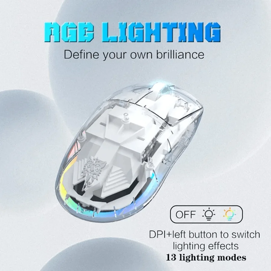 یکی از ویژگیهای برجسته این ماوس، نورپردازی RGB است که با چندین حالت نورپردازی زیبا، جلوهای خاص به فضای بازی شما میبخشد. کاربران میتوانند به راحتی حالت نورپردازی را تغییر دهند یا آن را خاموش کنند. ماوس به باتری داخلی با ظرفیت بالا مجهز است که با فناوری صرفهجویی در مصرف انرژی و حالت خواب خودکار، عملکردی طولانیمدت را ارائه میدهد.