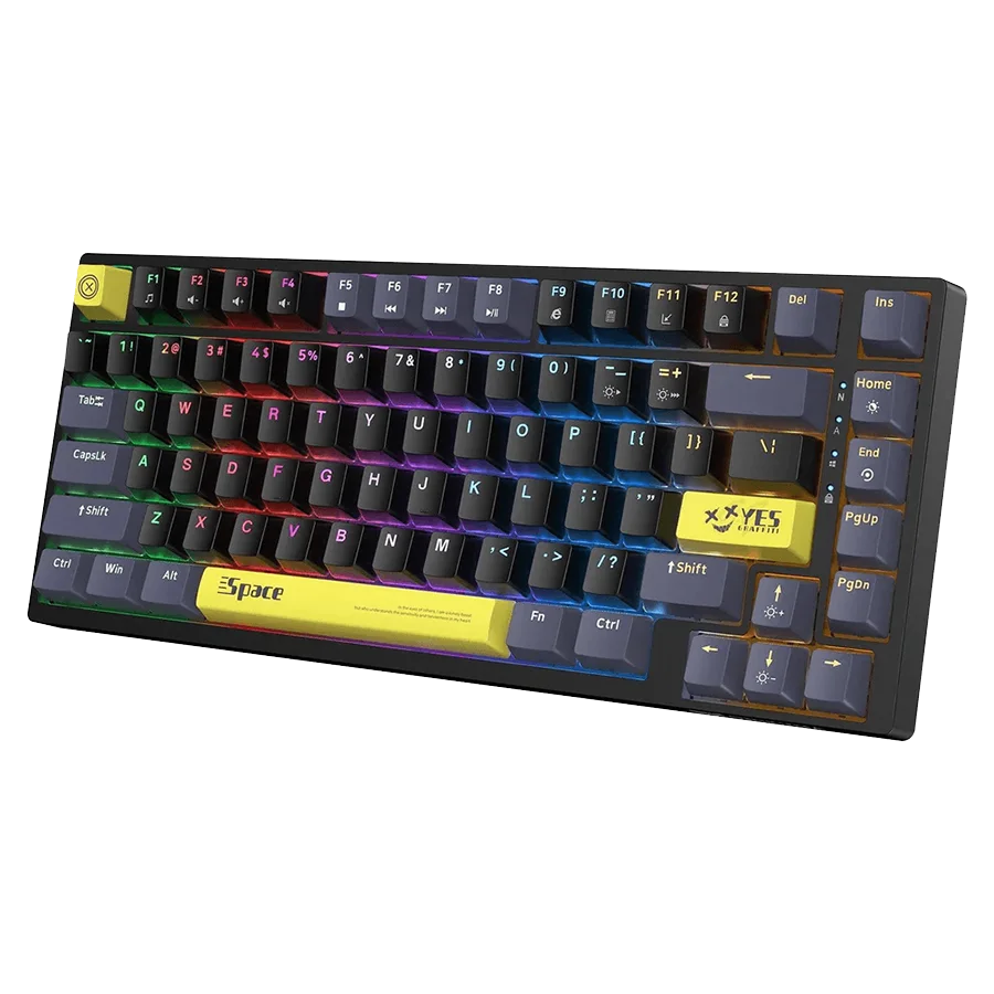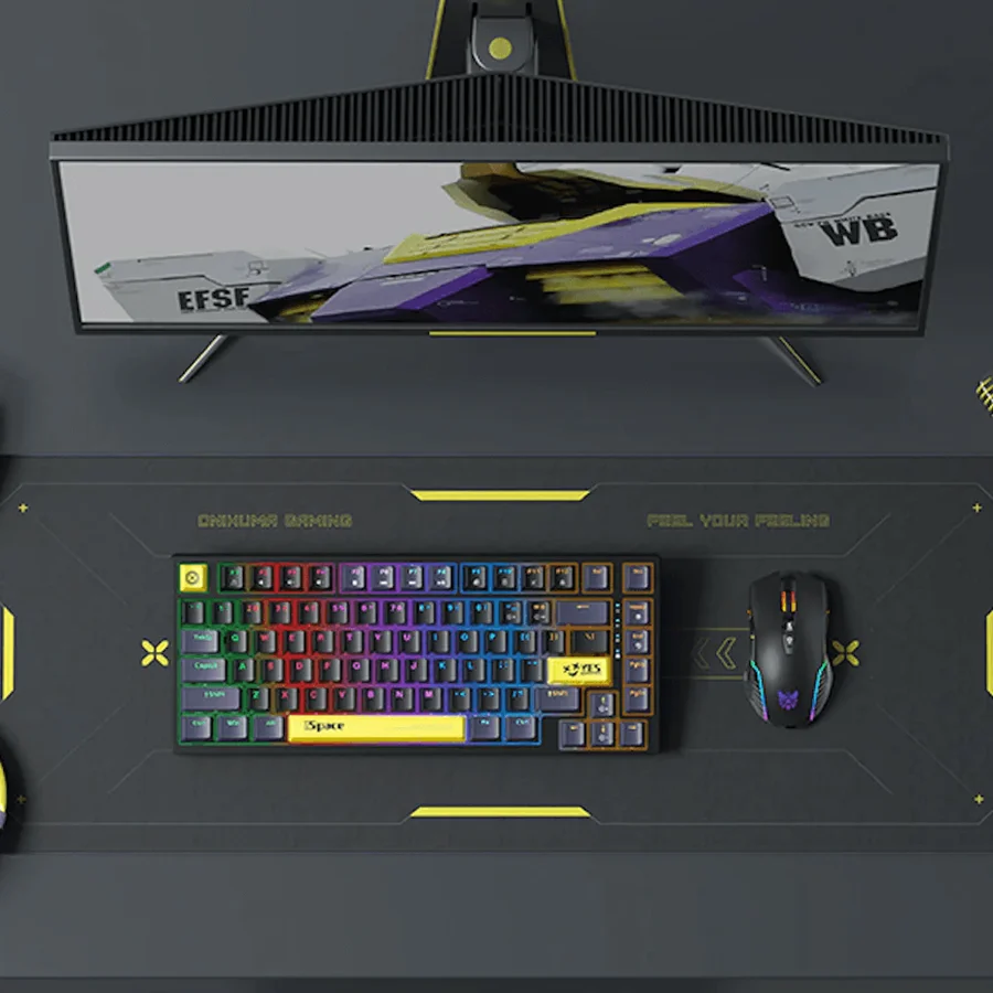 کیبورد گیمینگ اونیکوما ONIKUMA G52 Blackبا طراحی فشرده ۷۵ درصدی و 82 کلید، فضای کمتری روی میز شما اشغال کرده و همچنان تمام کلیدهای کاربردی را در اختیارتان میگذارد. کلیدها با طرحهای فانتزی، علاوه بر زیبایی ظاهری، پیدا کردن سریعتر کلیدها را ممکن میسازد. این کیبورد از سوییچهای مکانیکال بهره میبرد که بازخورد لمسی واضح، صدای کلیک رضایتبخش و پاسخدهی سریع را برای تایپ و بازی فراهم میکند. همچنین، قابلیت شخصیسازی ماکرو کلیدها از طریق نرمافزار، آن را برای هر سبک استفادهای مناسب میسازد.