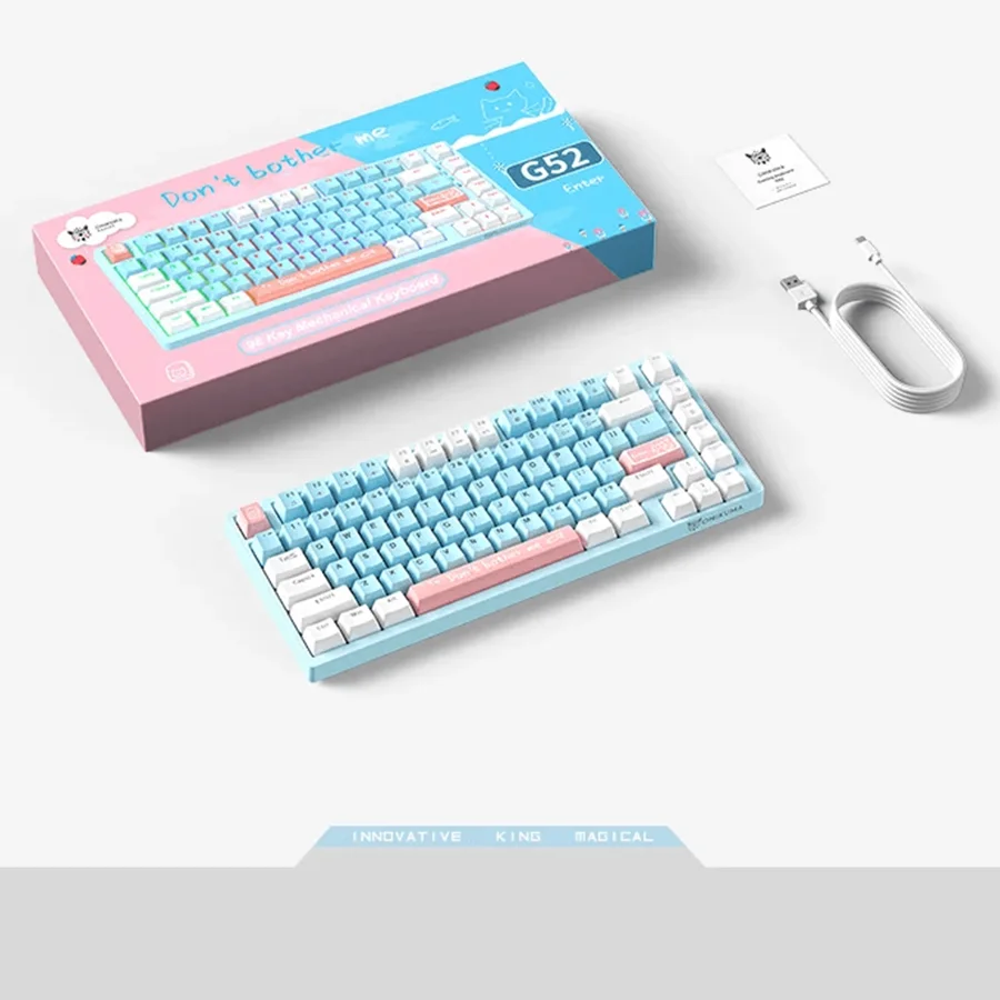 کیبورد گیمینگ اونیکوما ONIKUMA G52 Mechanical با طراحی فشرده 75 درصدی و 82 کلید، فضای کمتری روی میز شما اشغال کرده و همچنان تمام کلیدهای کاربردی را در اختیارتان میگذارد. کلیدها با طرحهای فانتزی، علاوه بر زیبایی ظاهری، پیدا کردن سریعتر کلیدها را ممکن میسازد. این کیبورد از سوییچهای مکانیکال آبی بهره میبرد که بازخورد لمسی واضح، صدای کلیک رضایتبخش و پاسخدهی سریع را برای تایپ و بازی فراهم میکند. همچنین، قابلیت شخصیسازی ماکرو کلیدها از طریق نرمافزار، آن را برای هر سبک استفادهای مناسب میسازد.