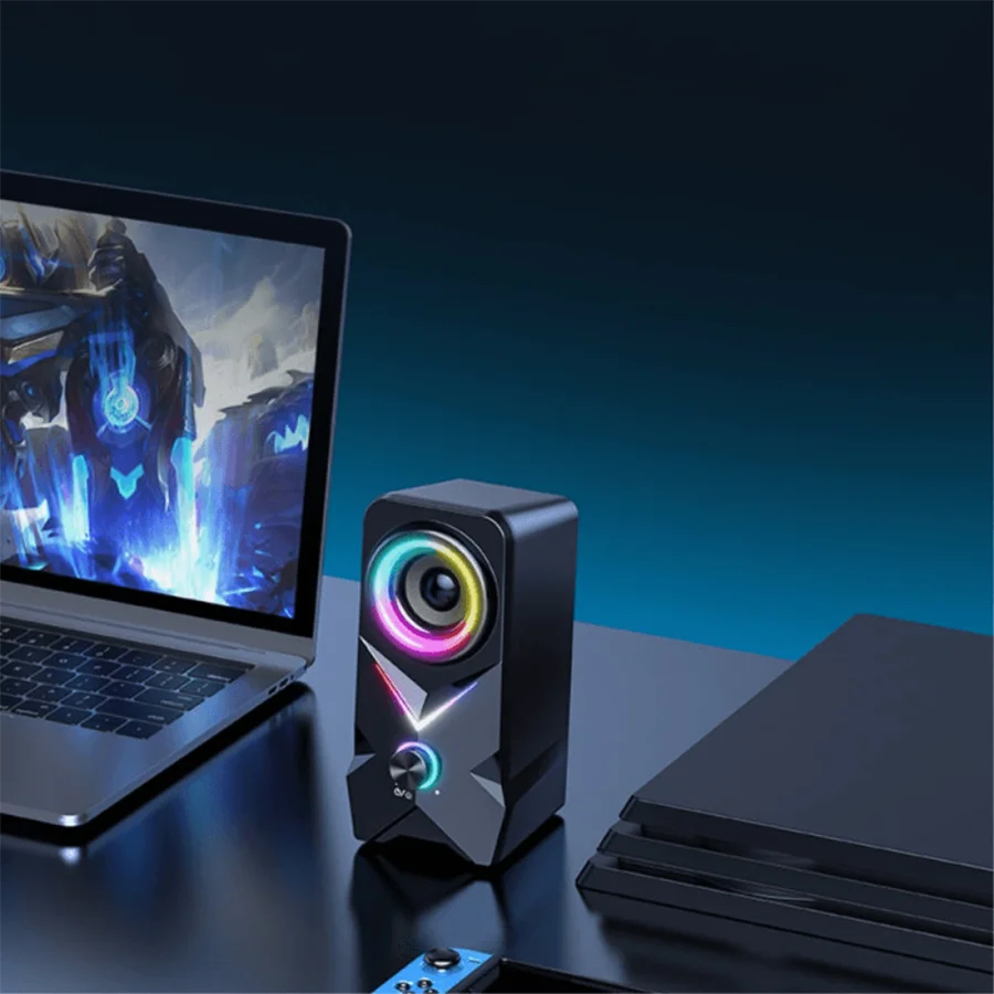 اسپیکر گیمینگ اونیکوما ONIKUMA L2 Black طراحی شده است تا تجربه صوتی شما را در بازی‌ها و سرگرمی‌های چندرسانه‌ای به سطح بالاتری برساند. این اسپیکر با طراحی زیبا و نورپردازی RGB، نه‌تنها صدایی باکیفیت ارائه می‌دهد، بلکه با تجهیزات گیمینگ شما نیز به‌خوبی هماهنگ می‌شود. رابط اتصال شامل پورت USB و جک 3.5 میلی‌متری، استفاده از اسپیکر را برای طیف گسترده‌ای از دستگاه‌ها مانند کامپیوتر، لپ‌تاپ و کنسول‌های بازی آسان می‌کند.