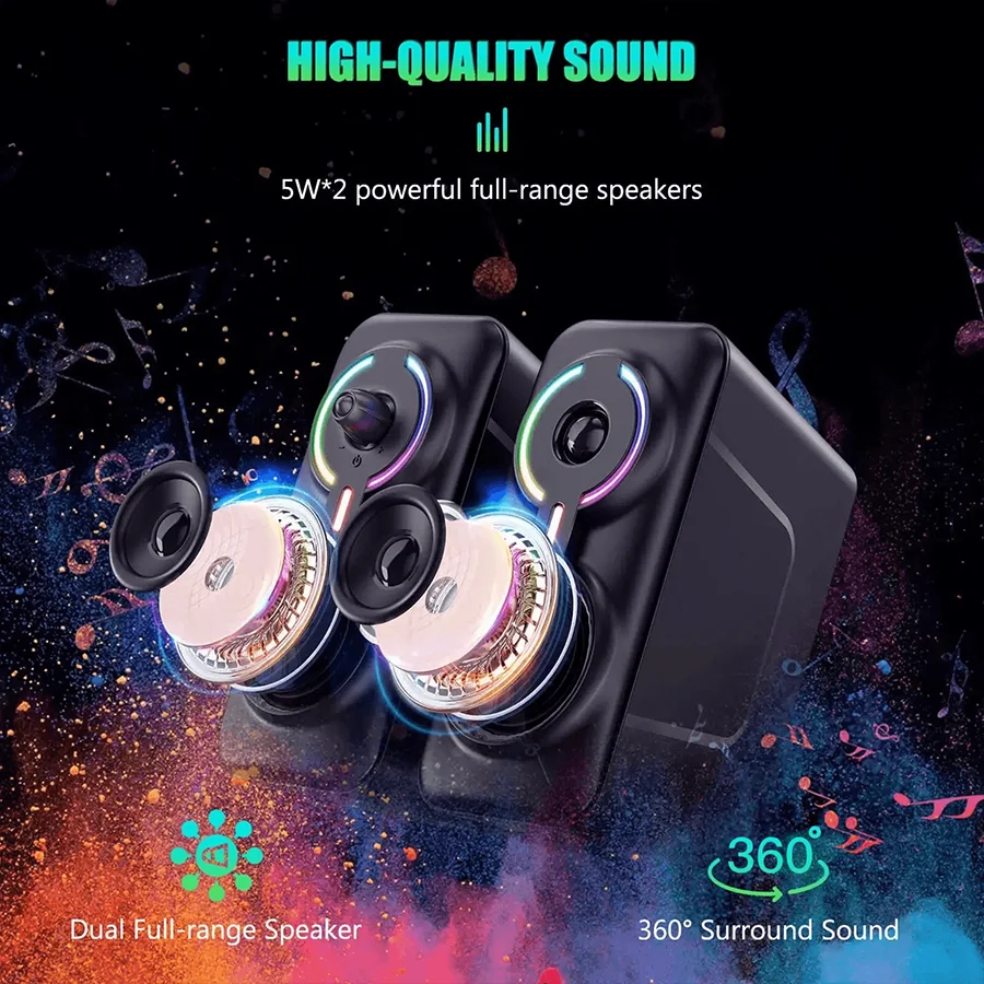 ONIKUMA L6 دارای خروجی 10 وات است که صدای بلند و واضحی را تولید می‌کند. همچنین با صدای 360 درجه، تمام فضای اطراف شما پر از صدا می‌شود و به تجربه گیمینگ یا تماشای فیلم افزوده می‌شود. این ویژگی باعث می‌شود که صدای واقعی و غوطه‌ورکننده‌ای را از اسپیکر دریافت کنید.