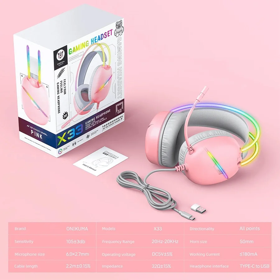 هدست گیمینگ اونیکوما ONIKUMA X33 با نورپردازی RGB رنگارنگ و افکت تنفسی تدریجی، جلوهای چشمگیر و زنده به ستاپ گیمینگ شما میبخشد. این افکت نوری، فضایی هیجانانگیز و غوطهورکننده ایجاد میکند که تجربه بازی را لذتبخشتر میسازد. طراحی آن با سازگاری هوشمند به وسیله تبدیل Type-C به USB-A، استفاده آسان و اتصال سریع به طیف گستردهای از دستگاهها را ممکن کرده است.