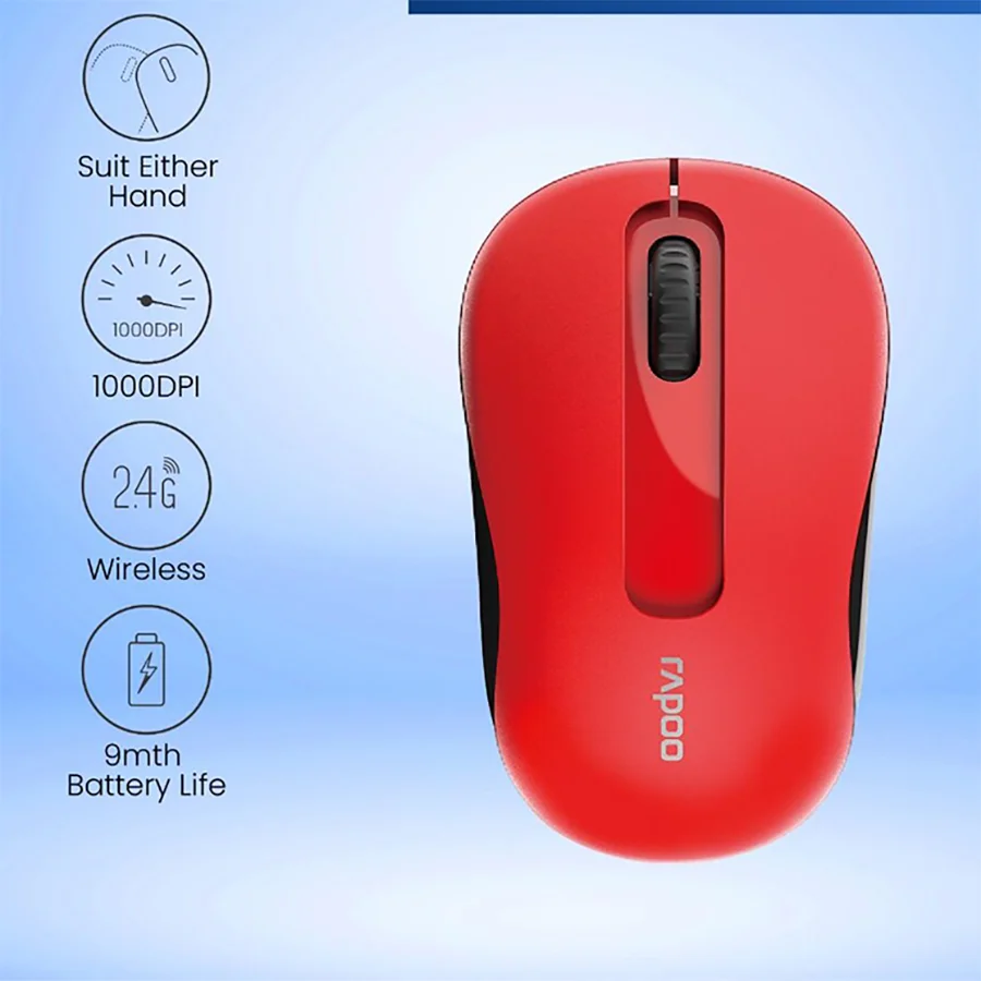 به لطف تکنولوژی بهینه سازی انرژی Rapoo، در کنار وجود دکمه خاموش و روشن آن، شما میتوانید موس M10 Plus را تا 12 ماه بدون عوض کردن باتری آن استفاده کنید.