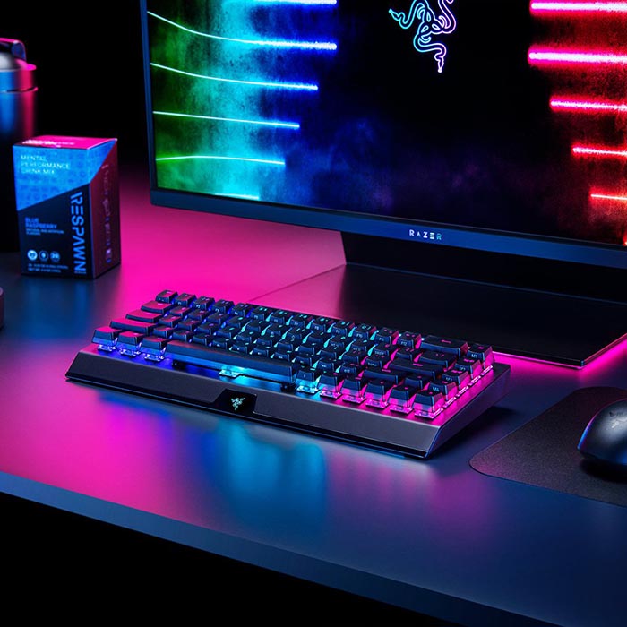 این کیبورد بدون کلید های فانکشن و دکمه های Home و نام پد، باز هم شبیه کیبورد های عادی جلوه می کند، ولی با یک تفاوت کلیدی – همچنان کلیدهای جهت دار وجود دارد. کیبورد Razer BlackWidow V3 Mini دسته دوم برای ستاپ های مینیمالیسیتی با فضای میز کوچک بسیار ایده آل است و می تواند تمام عملکرد های کیبورد های بزرگ را اجرا کند.