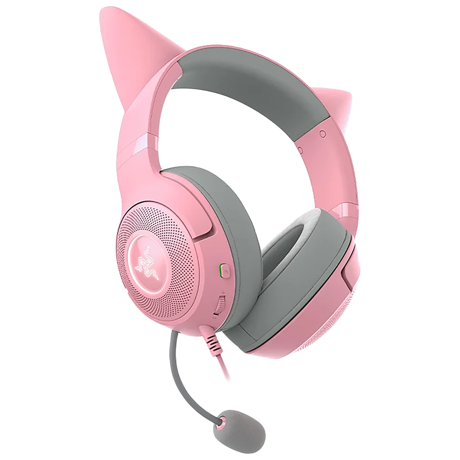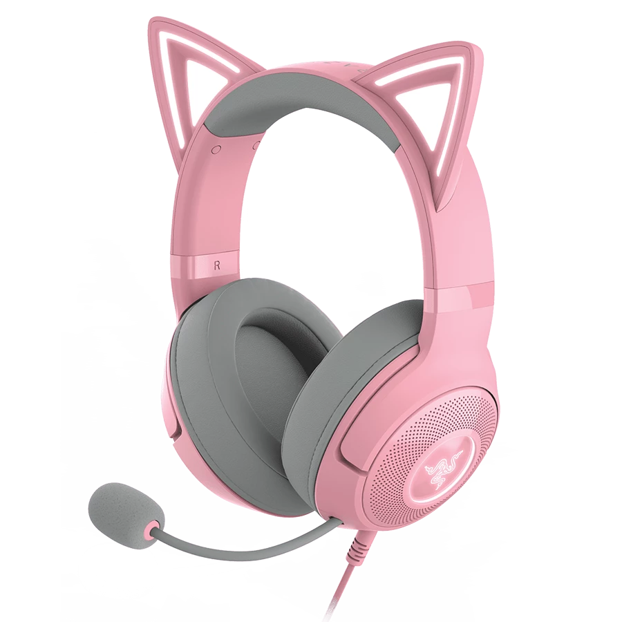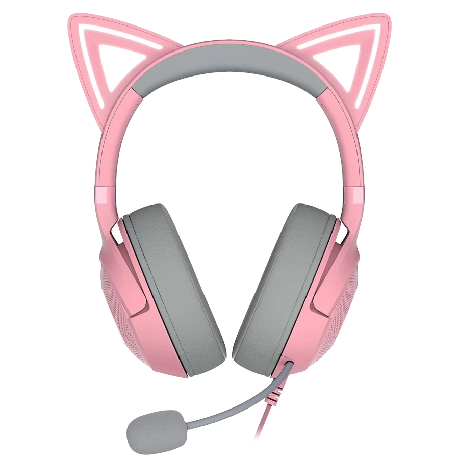 هدست ریزر Kraken Kitty Ed V2 – Quartz با گوشهای گربهای منحصر به فرد خود و نورپردازی Razer Chroma™ RGB، ظاهری بسیار جذاب و جالب توجه دارد. این نورپردازی قابل تنظیم بوده و میتواند از بین 16.8 میلیون رنگ و افکتهای بیشمار انتخاب شود. همچنین، نورپردازی گوشیها میتواند به صورت واکنشگرا به اموتها، هشدارها و سایر تعاملات در استریم واکنش نشان دهد و به شما امکان میدهد با بینندگان خود ارتباط بیشتری برقرار کنید.