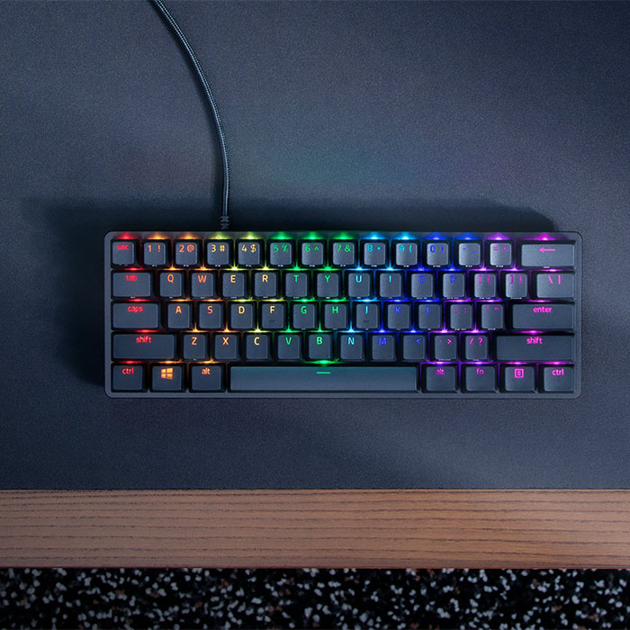کيبورد ريزر Razer Huntsman mini با سوییچ بنفش فاقد ردیف فانکشن (F) و صفحه کلید می باشد، اما هیچ عملکردی را از دست نمی دهد زیرا همه این ورودی ها هنوز از طریق توابع ثانویه و میانبرها قابل دسترسی هستند. طراحی این کیبورد برای طراحی مینیمال یا کوچکتر یا افرادی که نیاز به فضای میز تحریر بالایی دارند، ایده آل می باشد. ساختار جمع و جور آن به این معنی است که هنگام بازی به خوبی حرکت می کند و به شما کمک می کند راحت تر بازی کنید.