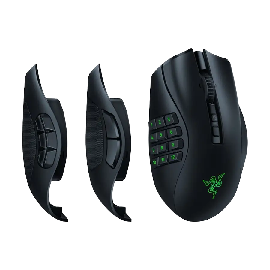 این موس گیمینگ بی سیم ماژولار دارای 3 نوع صفحه جانبی است که به صورت مغناطیسی در کنار موس قرار میگیرند- کلیدهای 2 تایی، 6 تایی و 12 تایی که به شما در تطبیق با ژانرهای مختلف کمک میکنند. بازی خود را با تنظیمات توصیه شده برای هر صفحه کلید تطبیق دهید.
