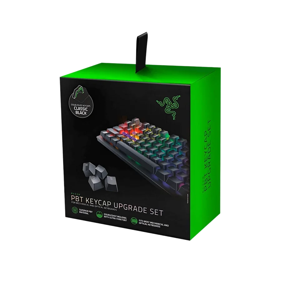 سختتر و بادوامتر از ABS و PBT، PVC یک ترموپلاستیک درجه یک است با ضخامت بالاست که به کیبورد شما ظاهری محکم، و بافت و احساس فوق العاده ای به شما در حین استفاده میدهد. با استفاده از فرآیند قالبگیری دقیق دوگانه (DOUBLESHOT MOLDING)، نوشته های کیکپ در برابر محو شدن مقاوم هستند. همچنین کیکپ ریزر Razer PBT Keycap Upgrade Set Black برای عبور دادن نورپردازی Razer Chroma RGB نازکترین فونتهایی که تاکنون بر روی کلیدهای PBT تولید شدهاند را دارد.