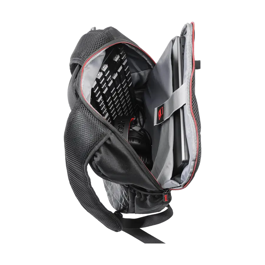 محفظه اصلی کوله پشتی به اندازه کافی بزرگ است که یک لپ تاپ 18 اینچی را در خود جای دهد، همچنین محفظه های دیگر، فضای کافی برای سایر وسایل الکترونیکی یا وسایل بازی دارد.