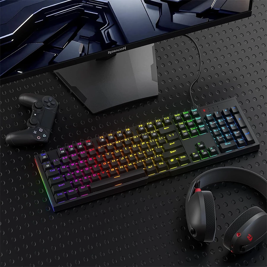 کیبورد Redragon ARGO K670 دارای نورپردازی RGB با ۱۸ حالت از پیش تنظیمشده است که جلوهای چشمنواز به میز کار یا گیمینگ میدهد. کاربران میتوانند سرعت جریان نور و میزان روشنایی را مستقیماً از روی کیبورد تنظیم کنند. حالتهای مختلف نوری برای هماهنگی با سبک بازی یا سلیقهی شخصی در دسترس است. این ویژگی جلوهای حرفهای و خاص به محیط کاربر میبخشد. ترکیب طراحی زیبا و نورهای رنگارنگ تجربهای لذتبخش ایجاد میکند.