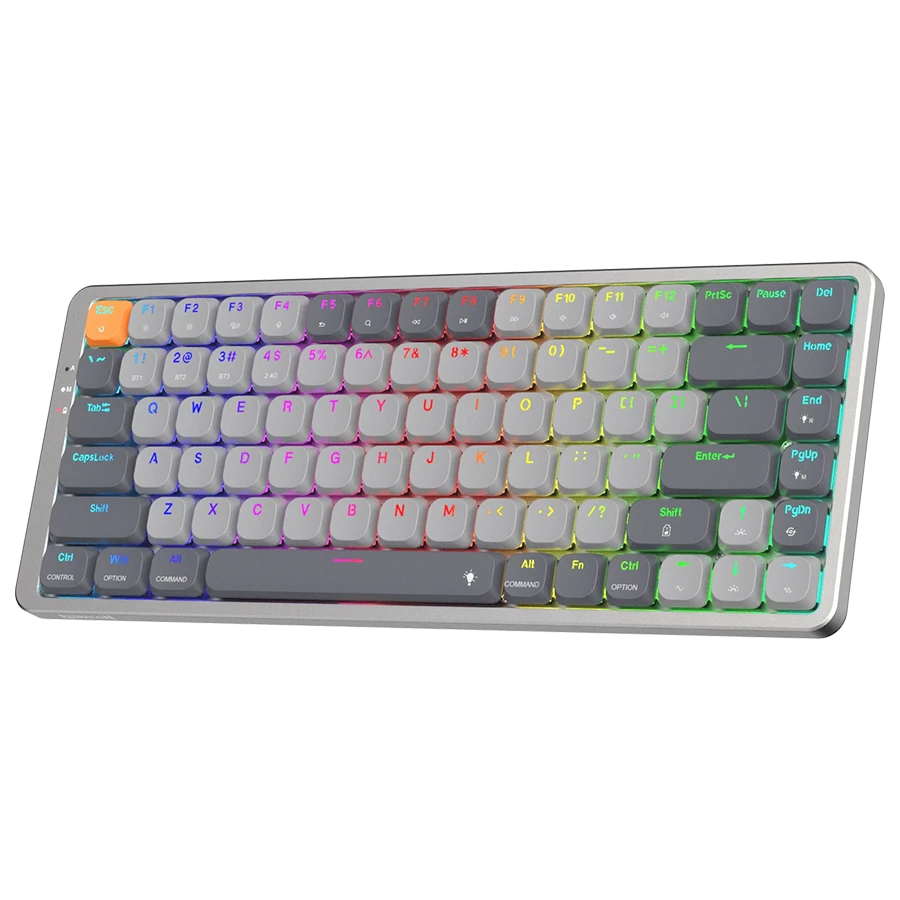 یکی از ویژگیهای منحصربهفرد این کیبورد، قابلیت نمایش میزان شارژ باتری است که با فشردن ترکیب کلید FN + Shift راست امکانپذیر میشود. همچنین، اگر میزان باتری زیر ۳۰٪ باشد، کلیدهای عددی ۱ تا ۳ به رنگ قرمز روشن میشوند. این کیبورد دارای نورپردازی RGB با الگوهای متنوع است که تجربهای بصری جذاب را برای کاربران فراهم میکند.