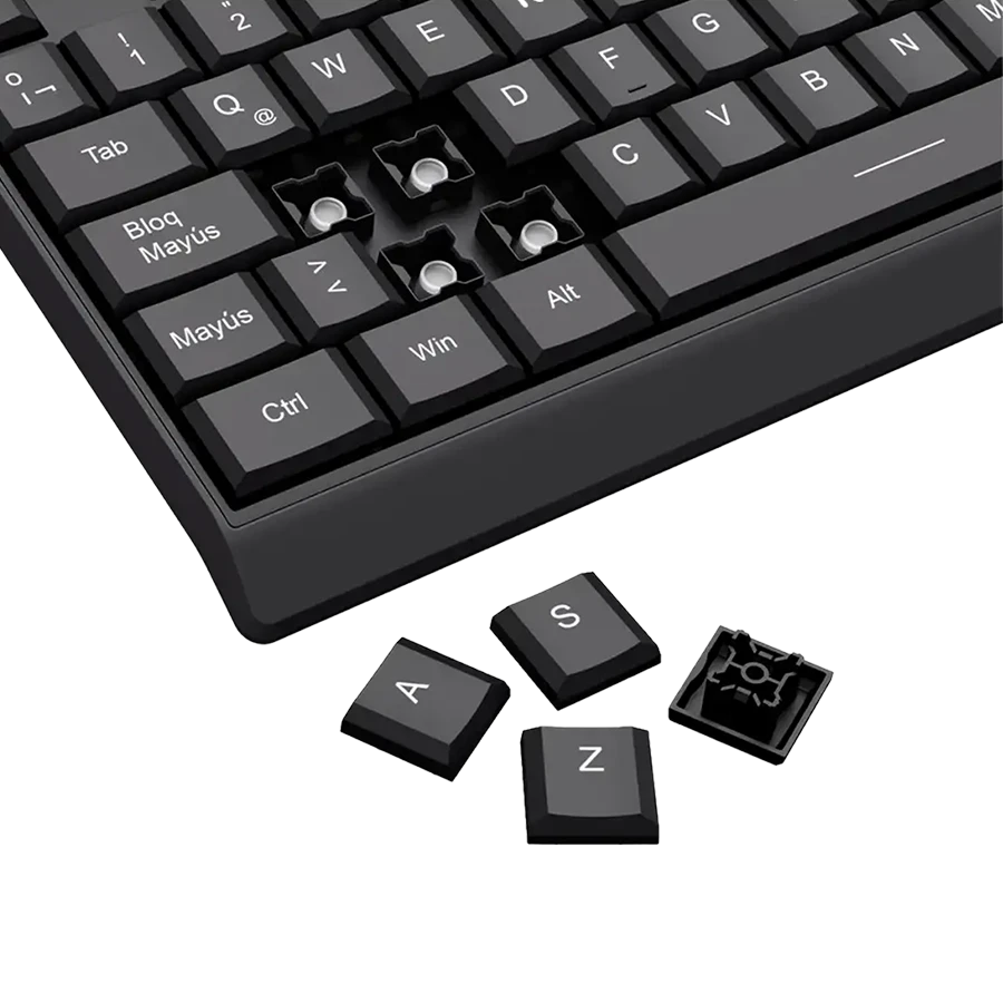 استفاده از سوئیچهای ممبران (Membrane) در این کیبورد، تایپ را بسیار نرم و بیصدا میکند. این موضوع برای محیطهای اداری که سکوت اهمیت دارد، بسیار مناسب است. علاوه بر کاهش صدا، ساختار این سوئیچها مقاومت خوبی در برابر سایش و استفاده طولانیمدت دارد. کاربران میتوانند ساعتهای طولانی بدون احساس خستگی تایپ کنند.