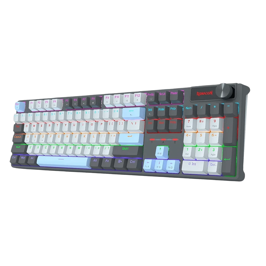 کیبورد Redragon CAESURA K718 GB دارای نورپردازی رنگینکمانی زنده با بیش از 20 حالت پیشفرض است. که مستقیماً از طریق کیبورد قابل تغییر هستند. تنظیم شدت روشنایی و سرعت انیمیشنها نیز از طریق کلیدهای روی دستگاه ممکن است. حالت جدید «همگام با موسیقی» نیز نورها را با ریتم آهنگها هماهنگ میکند. و فضایی پویا و سرگرمکننده برای گیمرها فراهم میسازد.