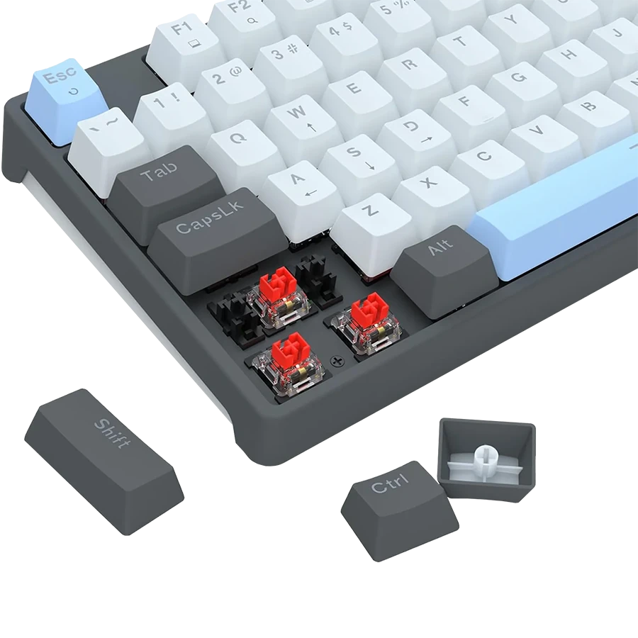 این کیبورد به سوئیچهای مکانیکال خطی قرمز مجهز شده است. که عملکردی نرم، بیصدا و با عمق فشار کم ارائه میدهند. به لطف طراحی Hot-Swappable، کاربران میتوانند به راحتی سوئیچها را تعویض کنند. چه از نوع 3 پین و چه 5 پین، بدون نیاز به لحیمکاری. فوم جذبکننده صدا با ضخامت 3.5 میلیمتر نیز صدای تایپ را واضح و دلپذیر نگه میدارد و از نویزهای آزاردهنده جلوگیری میکند.