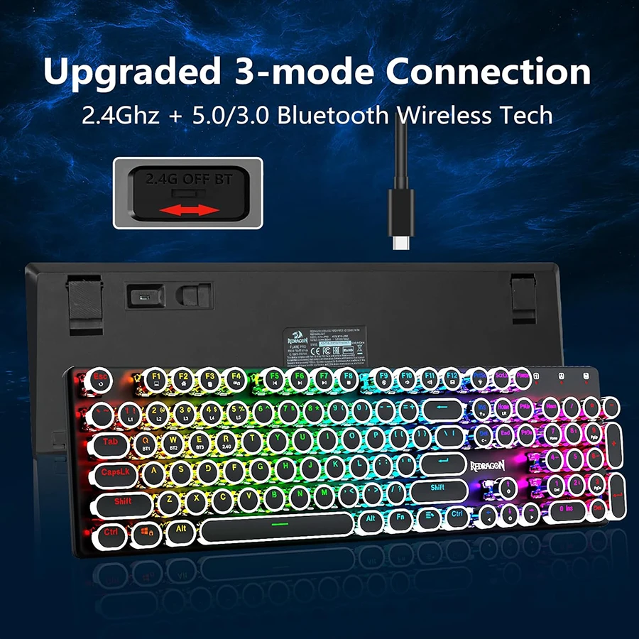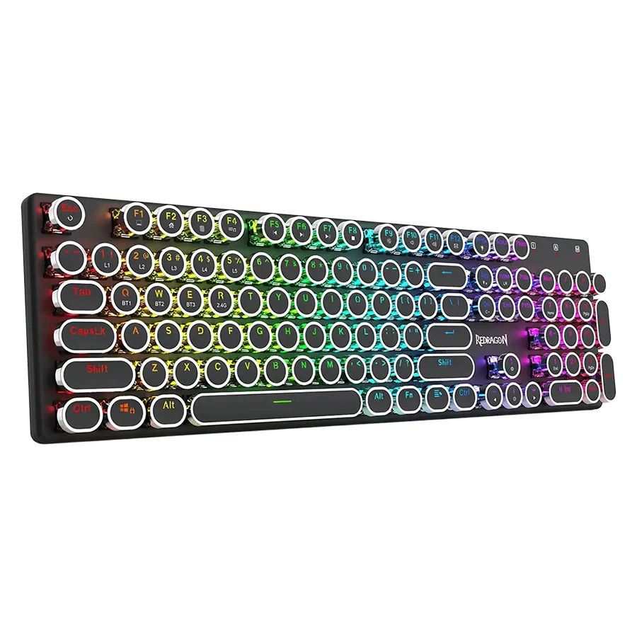 کیبورد بی سیم/باسیم مکانیکال گیمینگ ردراگون Flare Pro K710 RGB با الهام از ماشینهای تایپ قدیمی و طراحی استیمپانک، ظاهر کلاسیکی را با فناوری مکانیکال مدرن ترکیب کرده است. کلیدهای گرد به سبک تایپنویس به همراه نورپردازی RGB قابل تنظیم، جذابیت خاصی به میز کار یا گیمینگ شما میبخشند. این سبک نوستالژیک اما کاملاً حرفهای، حس نوشتن با یک دستگاه کلاسیک را در قالب یک ابزار مدرن برای گیمرها و تایپیستها زنده میکند.