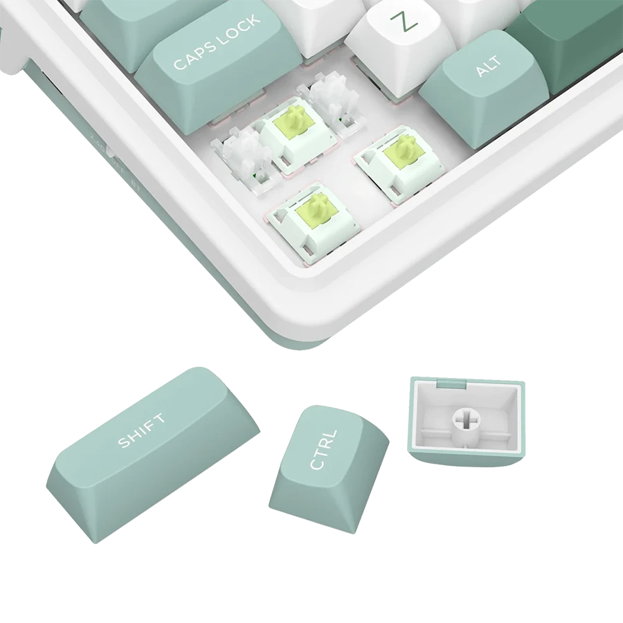 این کیبورد از سوییچهای خطی سفارشی Mint Mambo استفاده میکند. که به لطف روغنکاری ضخیم و ساختار گسکت، حرکت کلیدها را نرم، روان و بیصدا کرده است. طراحی گسکت بدنه به جای اتصالات پیچی، با کمک گسکتهای سیلیکونی، صداهای مزاحم را کاهش داده و انعطاف حرکتی بالاتری ایجاد میکند، در نتیجه هر ضربه کلید، حسی دقیق، تمیز و دلپذیر به کاربر منتقل میشود.