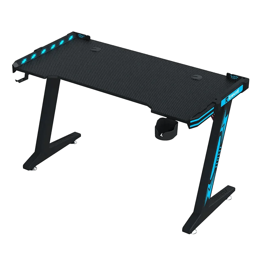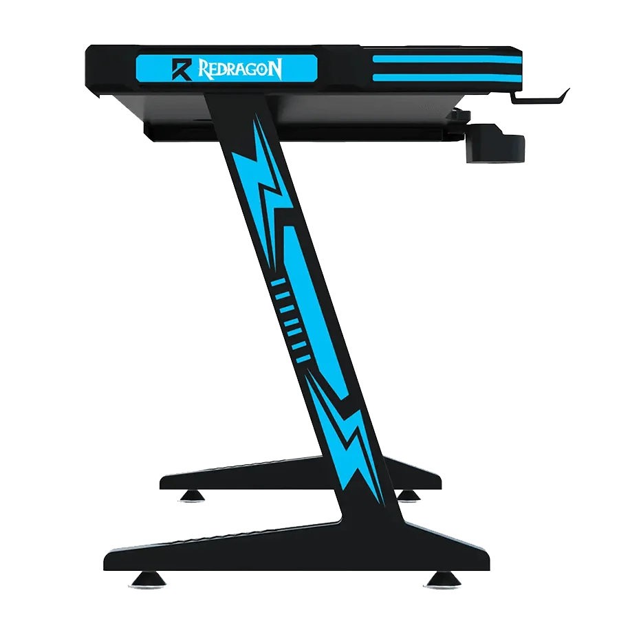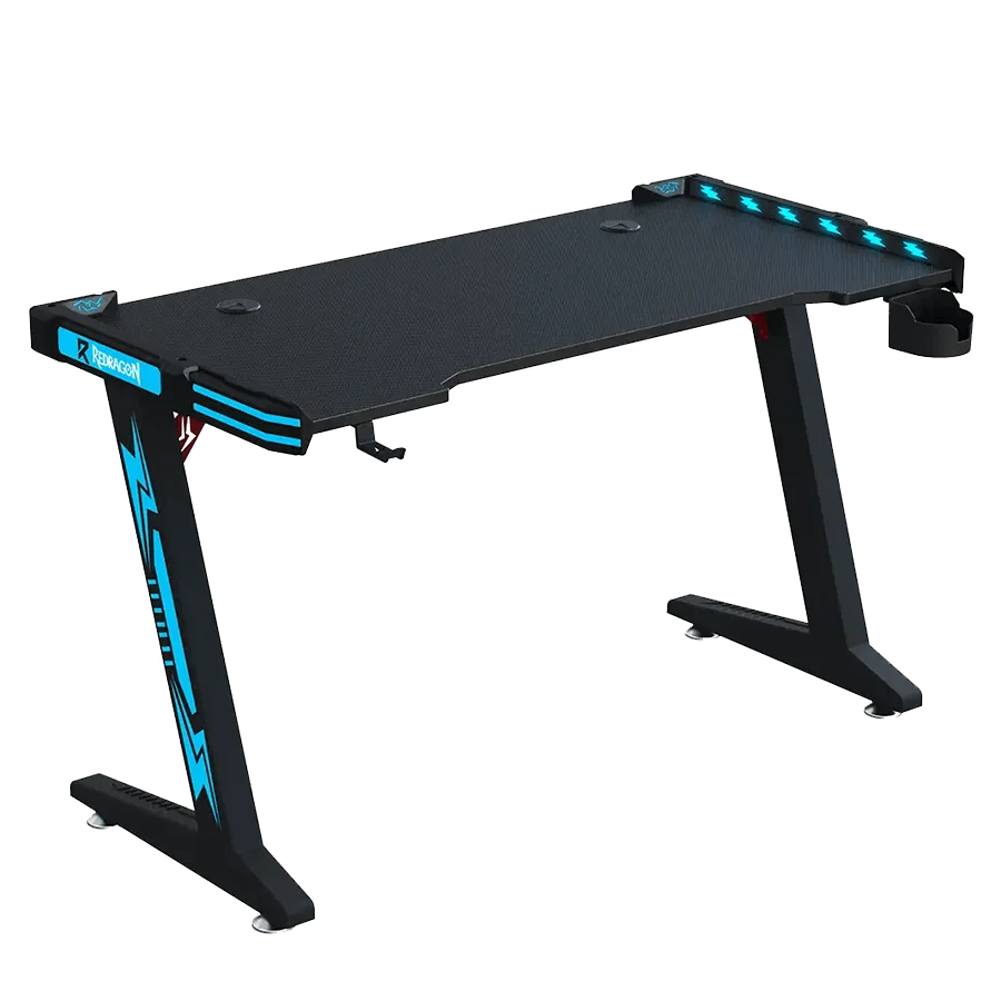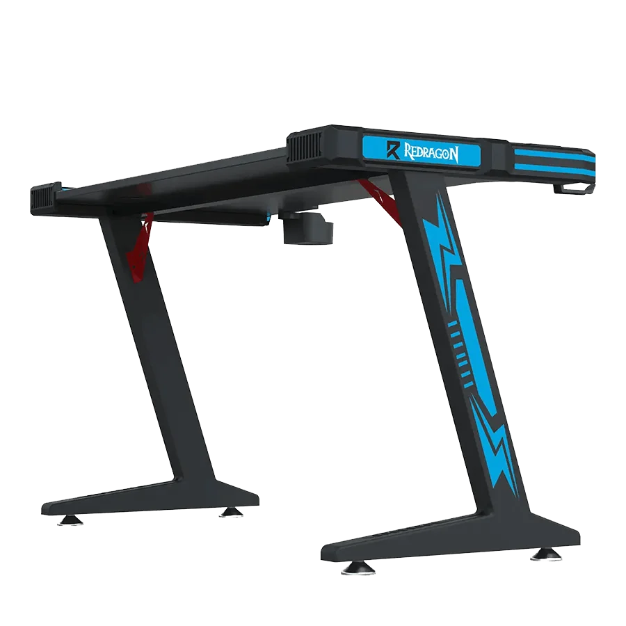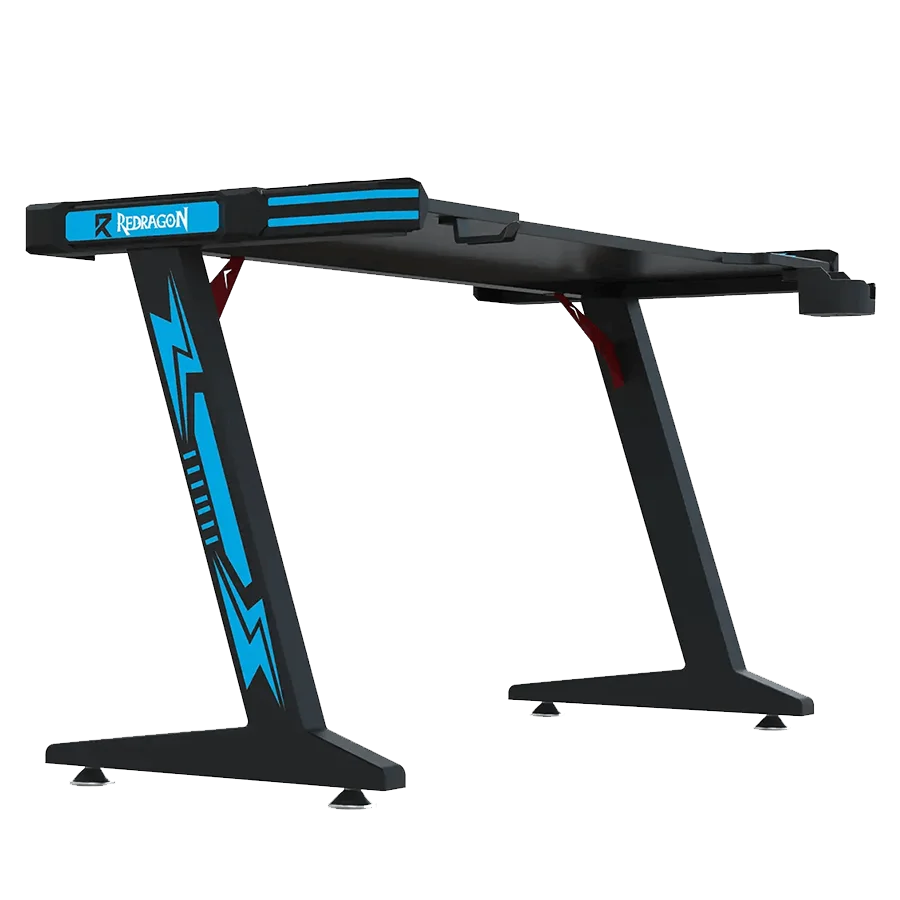میز گیمینگ ردراگون Redragon GD-3112B 140cm LED با ابعاد 140×60 سانتیمتر طراحی شده است. این میز از فیبر کربن و فلز ساخته شده و بسیار مقاوم است. در کنار طراحی حرفهای، امکانات جانبی خوبی هم دارد. نگهدارنده لیوان، نگهدارنده هدست و موسپد همراه آن ارائه میشود. همچنین نورپردازی تک رنگ آبی در لبهها، ظاهری جذاب و گیمینگ به میز میدهد. این میز انتخابی مناسب برای گیمرهایی است که ظاهر و عملکرد را همزمان میخواهند.